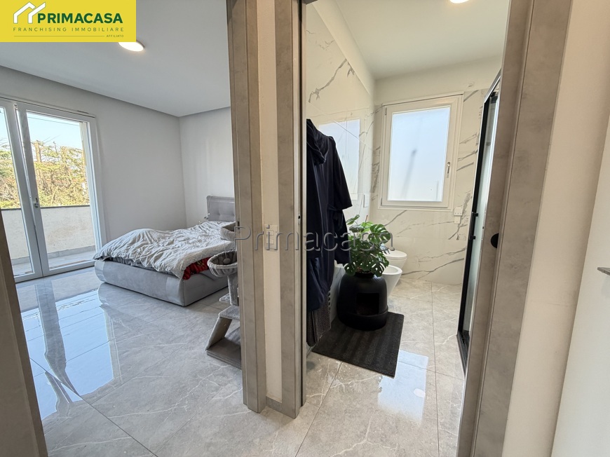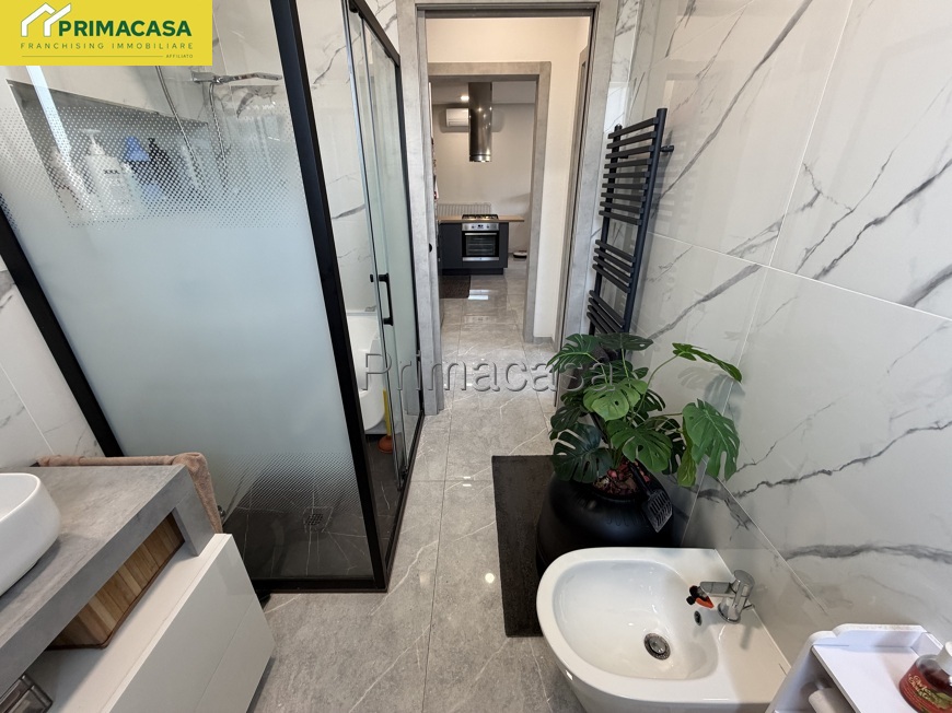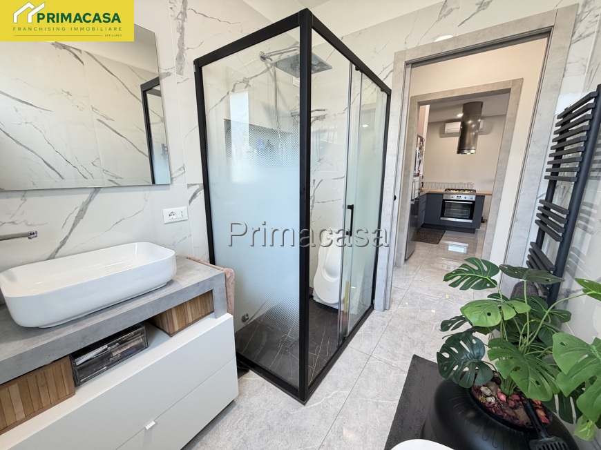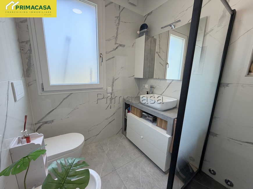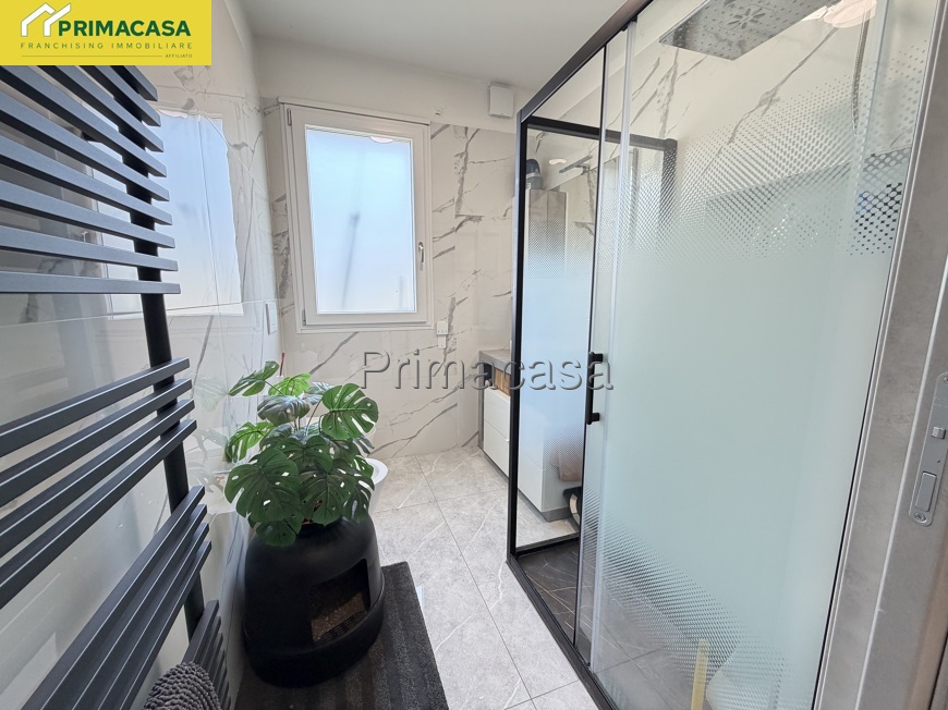 Serramenti in pvc con avvolgibili elettrici, pavimenti moderni, bagno rifatto completamente con grande doccia.