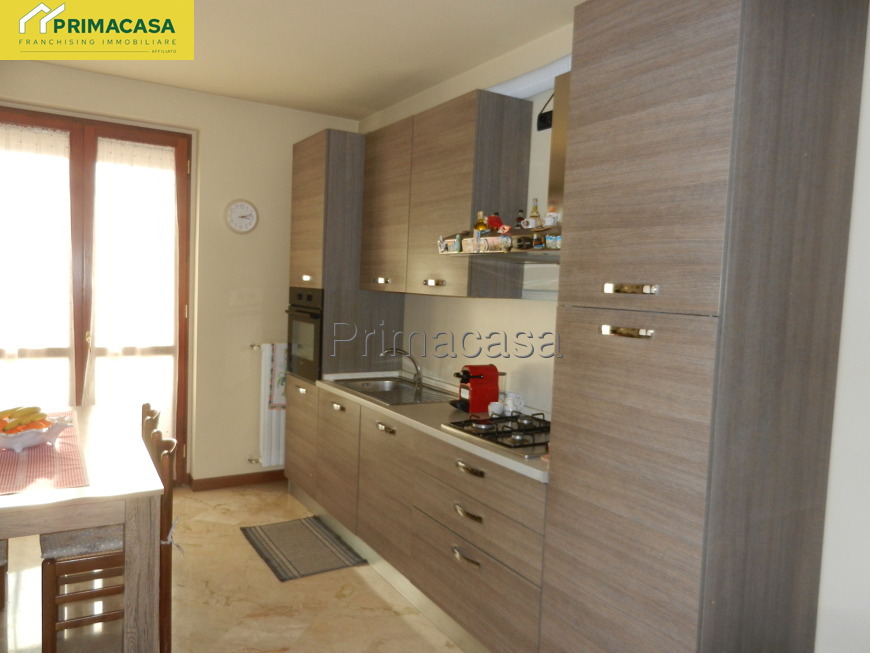 Appartamento in recente palazzina di 6 unità; al piano primo soggiorno con angolo cottura, due camere, due bagni, pregevoli finiture in marmo, garage e cantina nell'interrato. Arredato solo di cucina e disponibile da dicembre 2025.