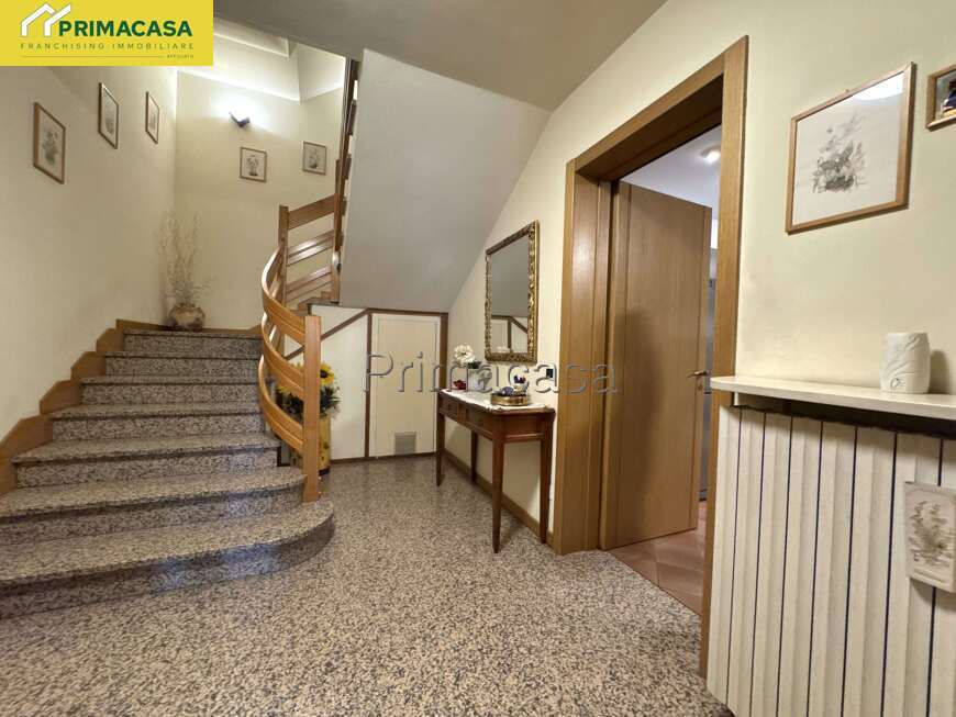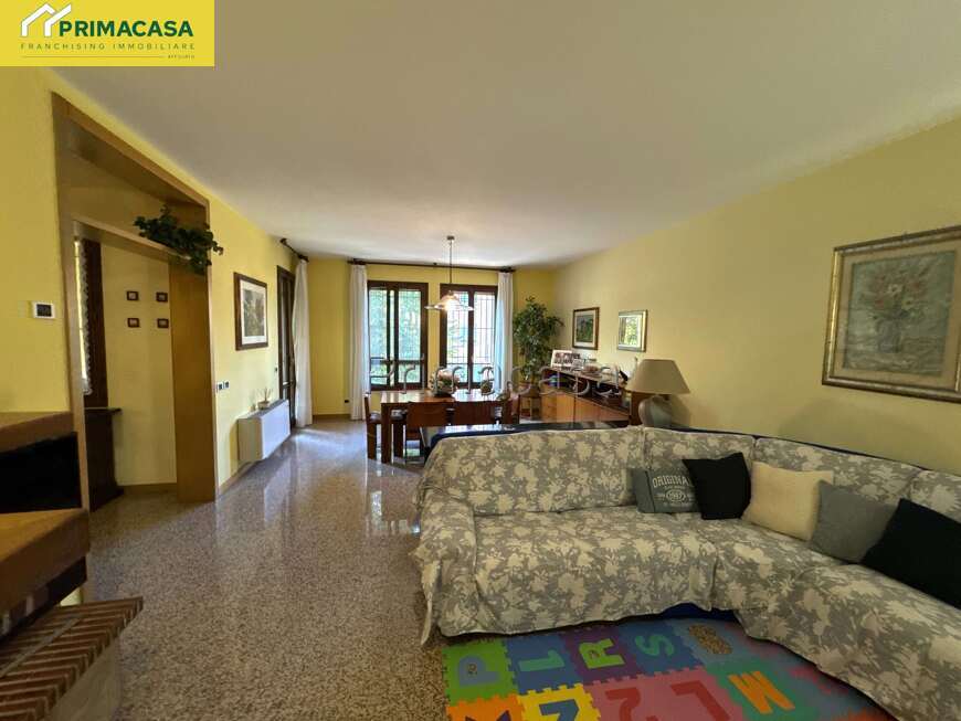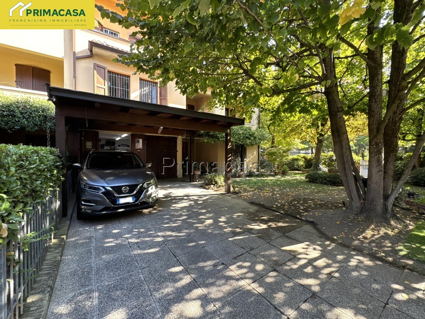 Soliera, in zona ricercata e chiusa al traffico, PRIMACASA propone in vendita importante villetta a schiera d'angolo edificata ad inizio anni '90. Sviluppata su tre piani oltre piano mansardato/soffitta è composta da: piano terra, ampio giardino angolare su due lati, ingresso, garage doppio di 40mq con accesso interno, locale cantina/taverna con bagno interno e un secondo ingresso indipendente. Al piano primo luminosa zona giorno con un grande soggiorno di 37mq dotato di accesso a terrazzo e zona living fronte camino, disimpegno, una comoda cucina abitabile con affaccio su terrazzo loggiato e bagno (ristrutturato nel 2022). Il secondo piano mette a disposizione una zona notte adatta a tutta la famiglia con camera padronale di generose dimensioni dotata di affaccio su terrazzino, due camere matrimoniali (delle quali una con balcone) e un grande bagno notte dotato di box doccia e vasca. Al terzo ed ultimo livello, raggiungibile quotidianamente con scala tradizionale in muratura di trovano due ambienti soffitta e un ambiente sfruttabile come studio/stanza giochi ecc. Ampia area cortiliva sue due lati di circa 200 mq piantumata e con cancello automatizzata. Immobile libero da gennaio 2026 info e visite Luca 327.3129907 o passa a trovarci nel nostro ufficio di Soliera (MO) Via Roma n° 245.
