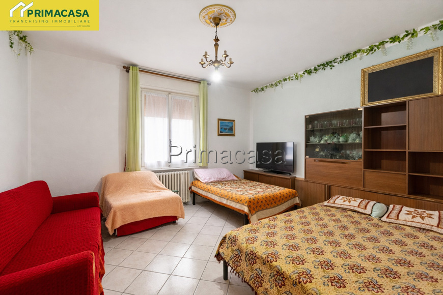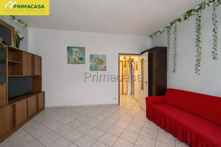 L'immobile è così composto: ingresso, ampio soggiorno luminoso, cucina abitabile con accesso al balcone, due camere da letto e bagno. Gli spazi risultano ben distribuiti e funzionali, ideali per una famiglia o per chi cerca una soluzione abitativa comoda. Completa la proprietà un garage singolo al piano terra, perfetto come posto auto o spazio di deposito.