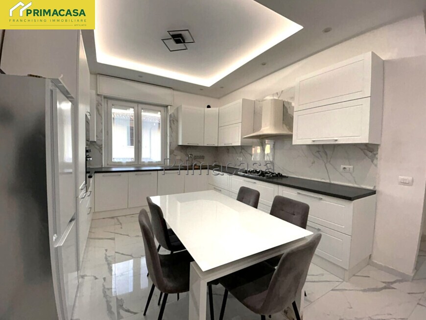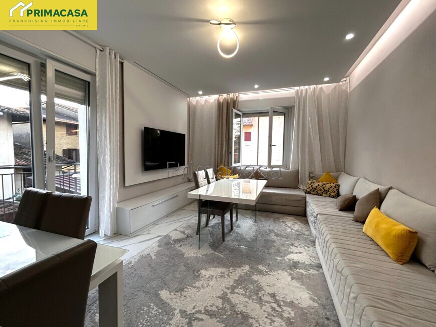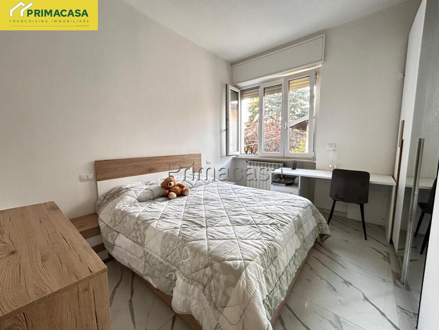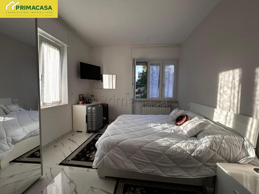 Quadrilocale ristrutturato a nuovo. Ampio e luminoso soggiorno, cucina abitabile, bagno moderno. Due balconi, cantina, giardino privato e due posti auto.