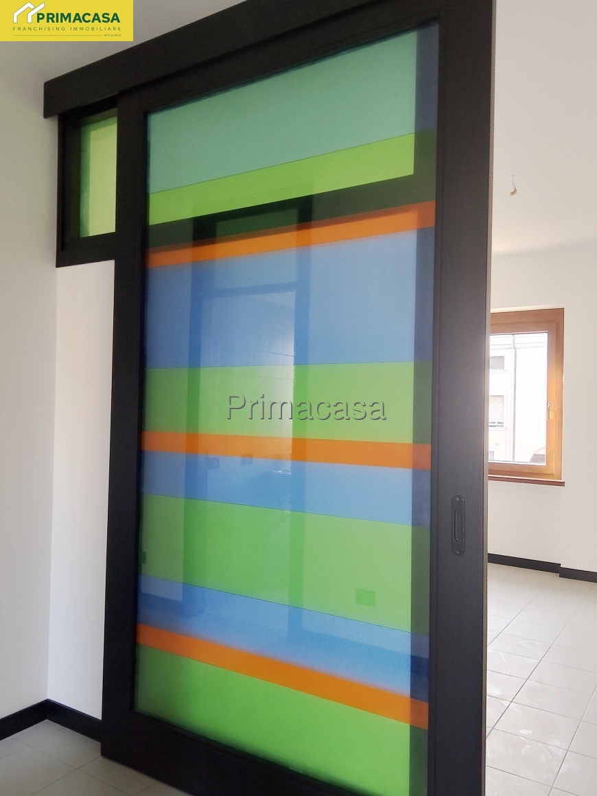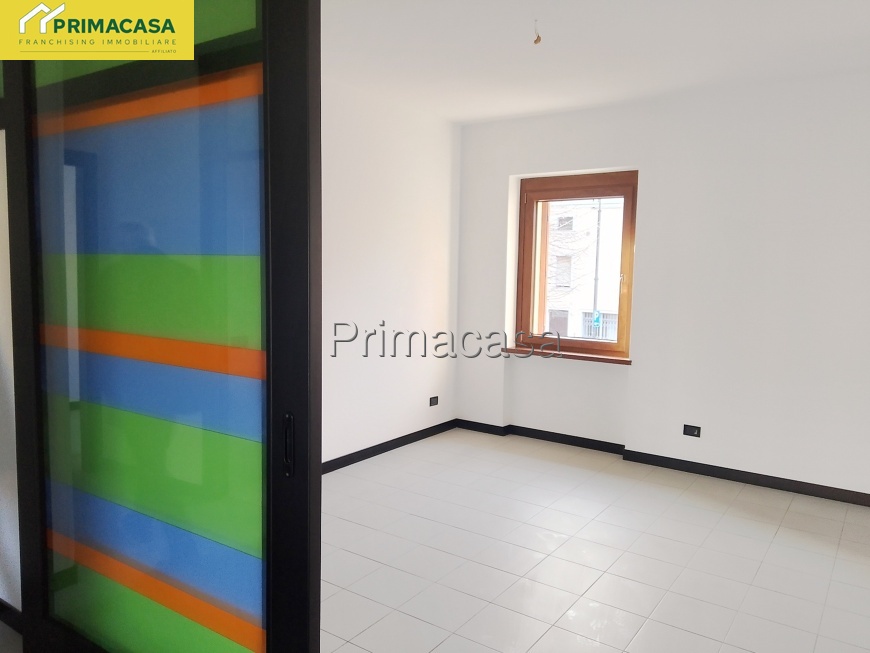 In pieno centro, ampio appartamento al primo piano con luminosa e spaziosa zona giorno separato da vetrata scorrevole, cucinotto con accesso al balconcino sul retro, bagno con doccia e vasca finestrato, camera matrimoniale e ulteriore ampia camera.