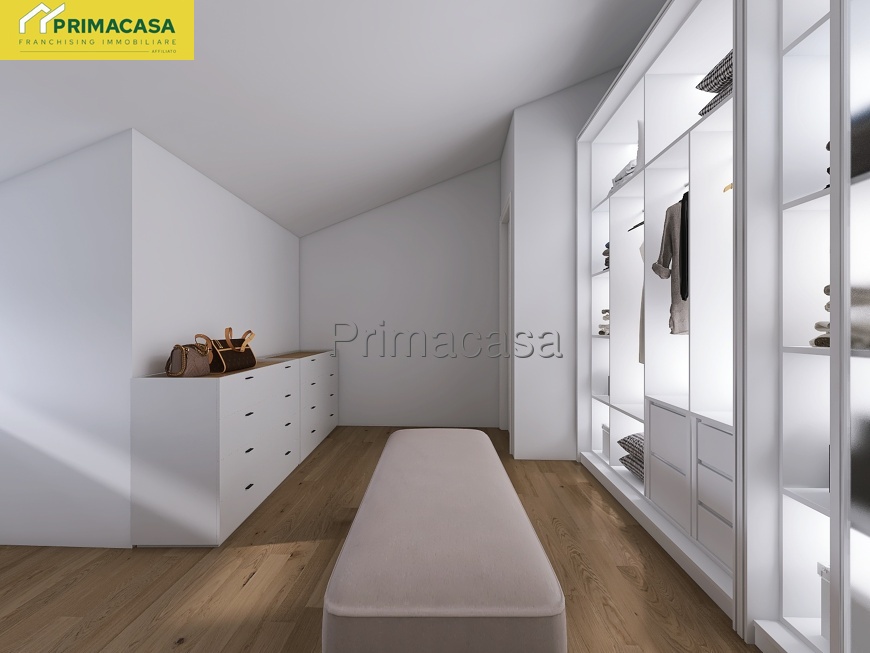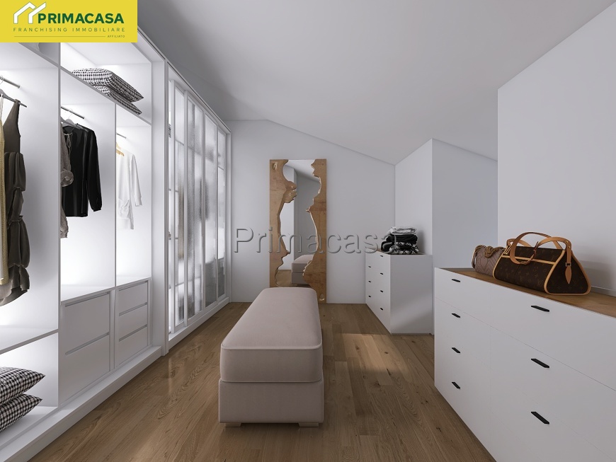 All'interno di ogni unità abitativa troviamo pavimenti in parquet listone giordano, serramenti in legno di rovere con vetro termopan, scuretti in legno, zanzariere su tutte le finestre e porte finestre, portoncino blindato, impianto di riscaldamento a pavimento con caldaia interna a condensazione, termostato ambientale tri zona, travatura a vista in rovere sbiancato, porte bianche moderne, pannelli solari, predisposizione impianto di climatizzazione, predisposizione impianto d'allarme e video citofono.