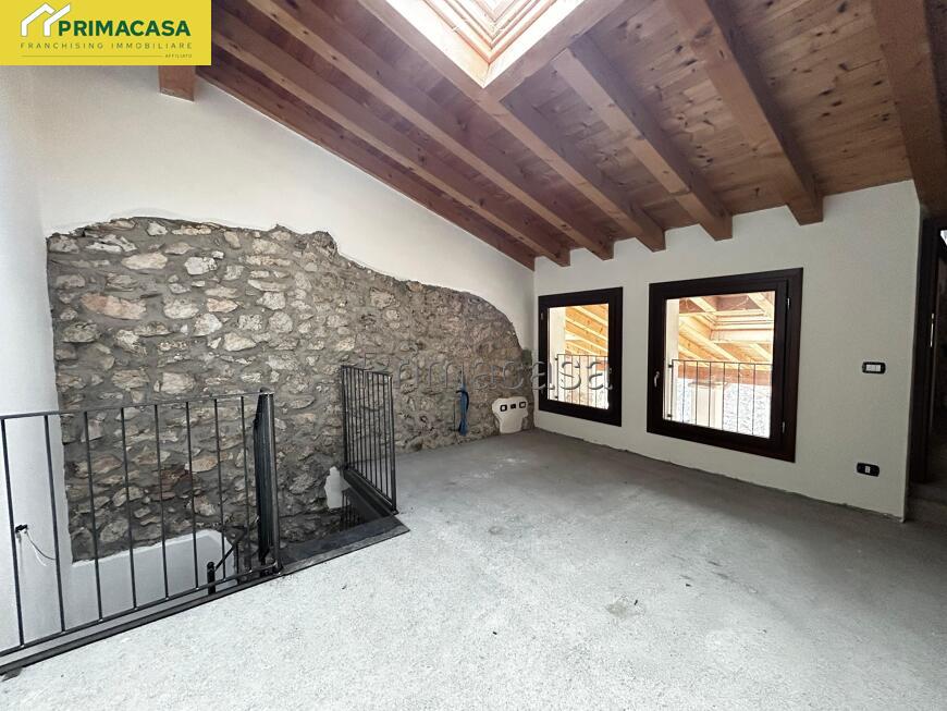 Trilocale su due piani: soggiorno con cucina separata, una camera singola e una matrimoniale. Bagno finestrato. Loggia vivibile e garage singolo. Ristrutturato a nuovo.