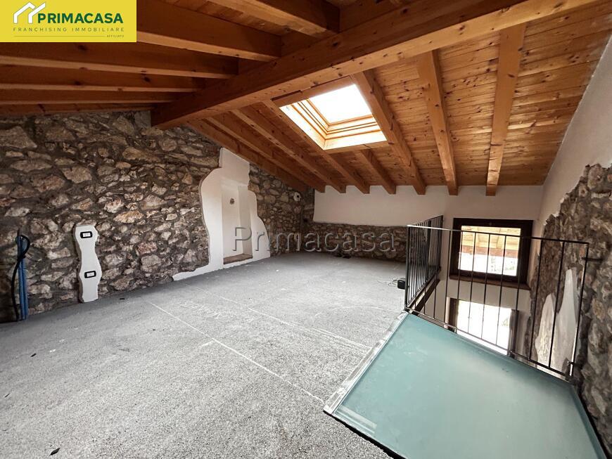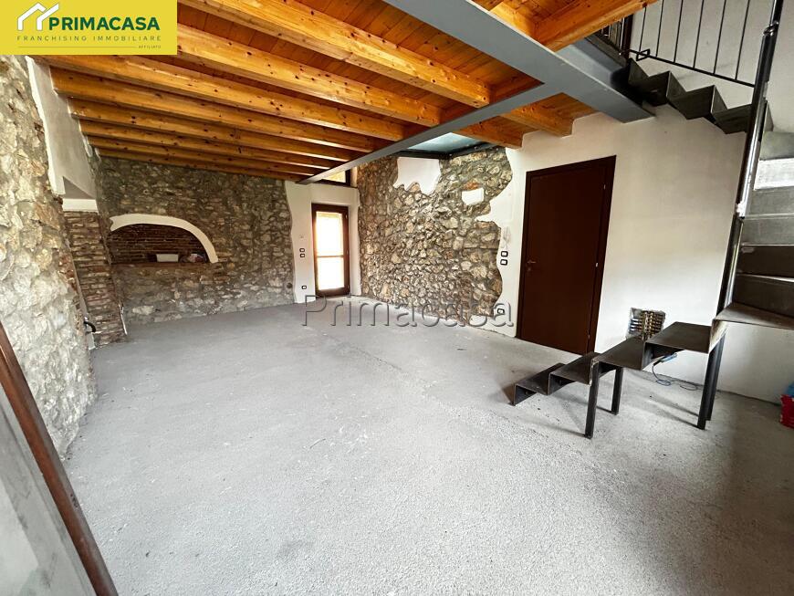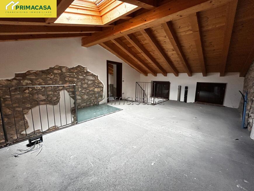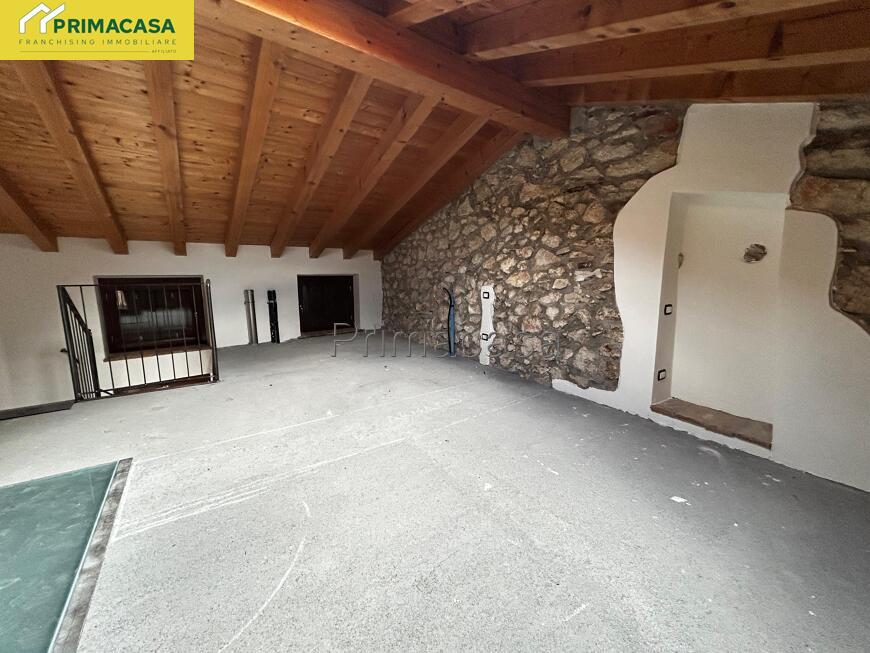 SERLE: Trilocale su due livelli ristrutturato a nuovo: Composto da luminosa zona giorno con grande loggia, una camera matrimoniale e una singola travate a vista. Bagno finestrato. Ripostiglio.