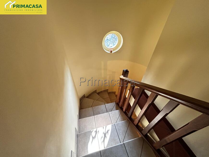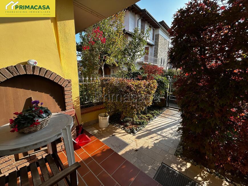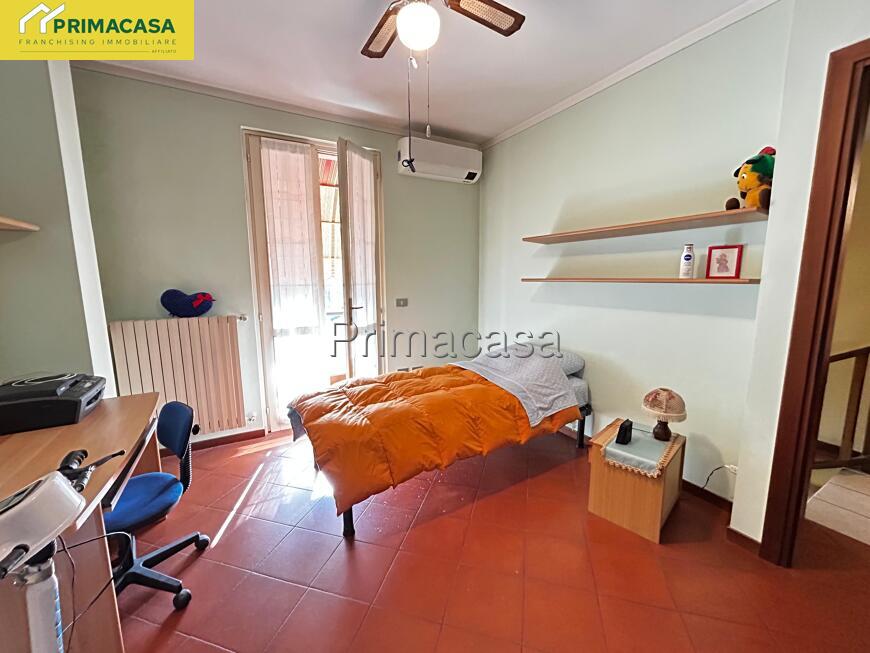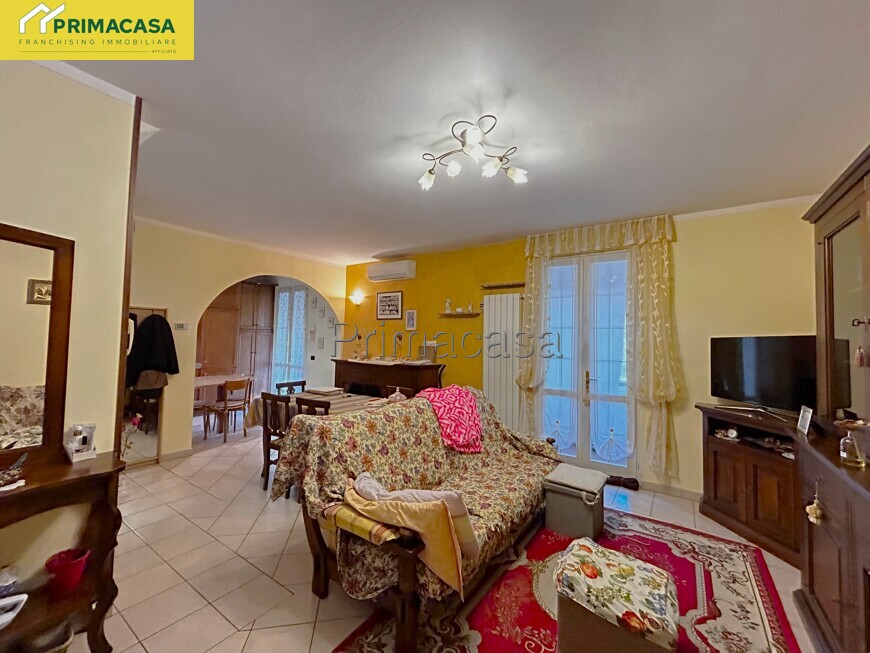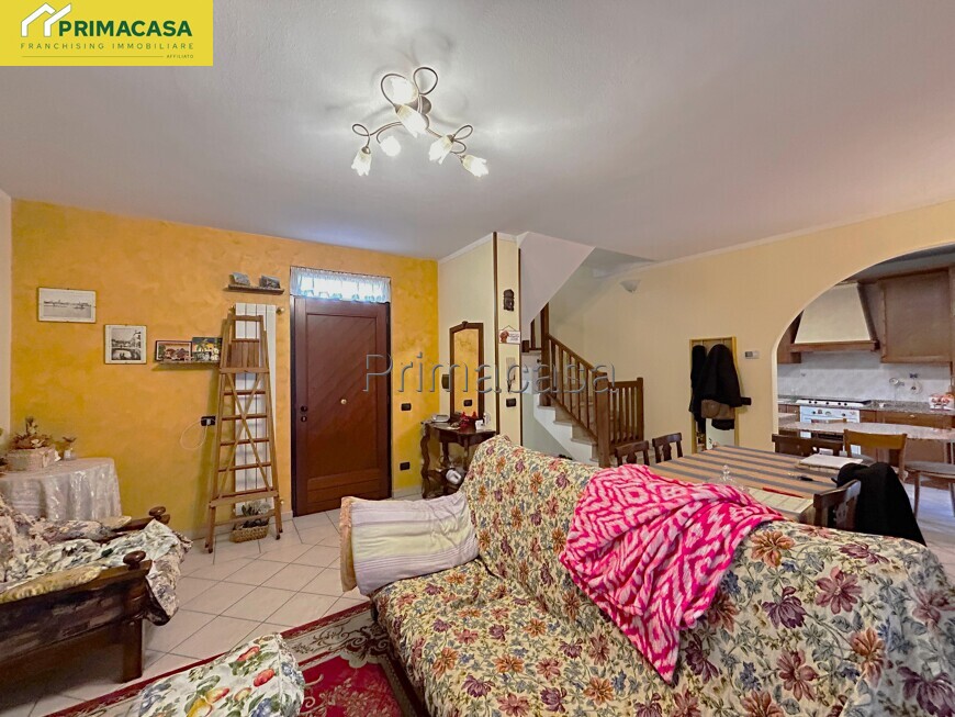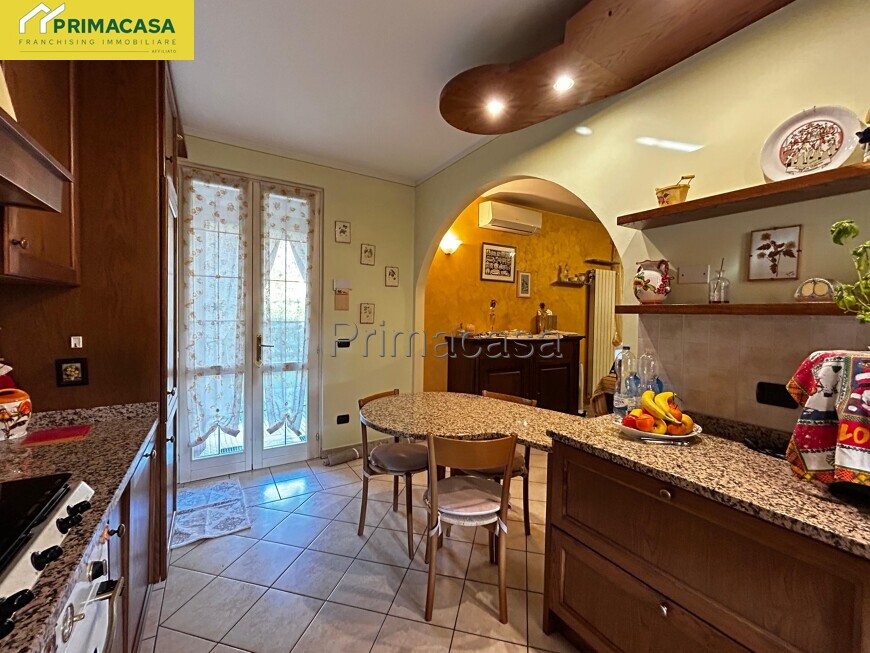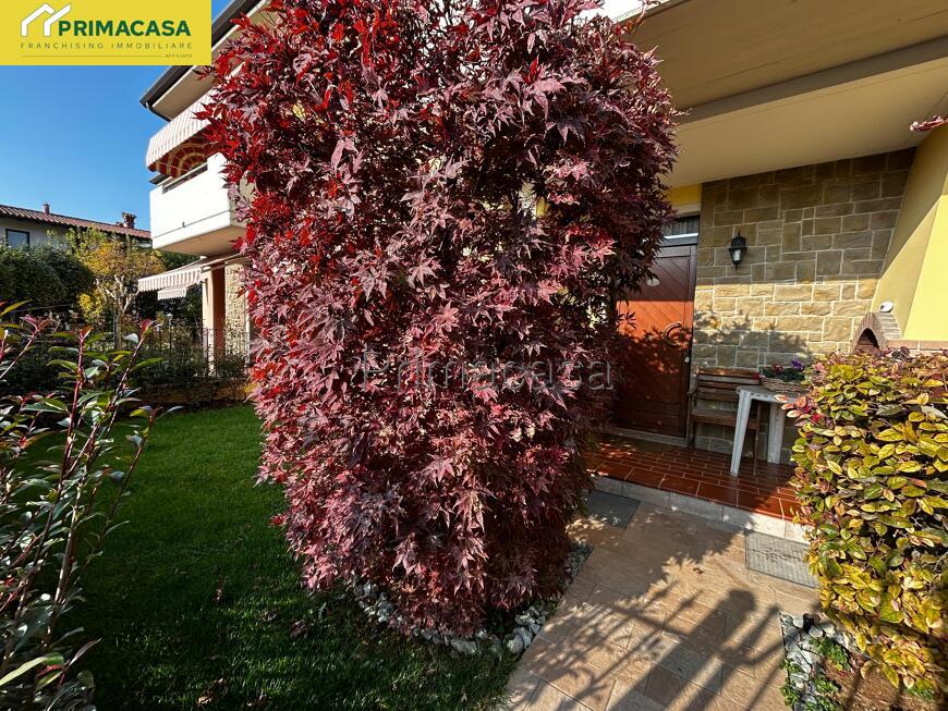 Centrale: ampio soggiorno e cucina abitabile al piano terra, tre camere luminose e doppi servizi, garage di comode dimensioni e giardino fronte e retro.