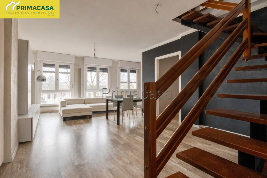 ZONA ESPANSIONE SUD - proponiamo appartamento duplex al secondo ed ultimo piano composto da ingresso su ampio soggiorno con cucina, disimpegno, camera matrimoniale e bagno. Al piano sottotetto collegato con scala interna, troviamo: due ampi ambienti utilizzabili come camere da letto, un bagno e un terzo ambiente/ripostiglio. Cantina e garage al piano terra.