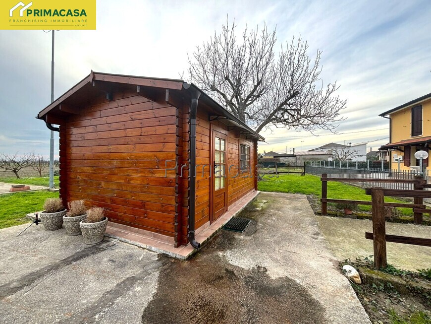 VANGADIZZA - Con la comodità della SS434 ma allo stesso tempo in una via tranquilla, proponiamo porzione di Bifamiliare di 180 mq costruita nel 2005, disposta su due livelli e così costituita: al piano terra da ampia e luminosa zona giorno con camino a vista, centrale termica, bagno finestrato e disimpegno con accesso alla tettoia esterna in legno; al piano primo tre camere da letto, ripostiglio, ampio bagno. Completa la proprietà annesso esterno in legno attualmente utilizzato come dependance.