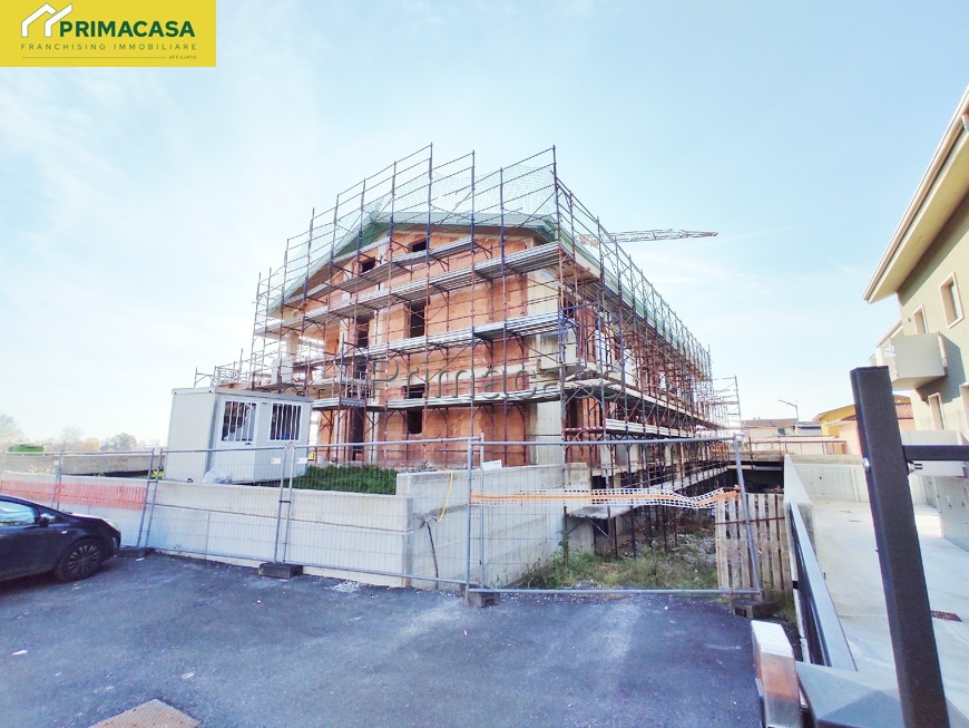 Di prossima costruzione, con consegna metà 2026, appartamento duplex in contesto di sei unità al piano primo, composto da ampia zona giorno di 47 mq, due camere, 2 bagni, ampia soffitta al grezzo e garage doppio. Classe energetica prevista, a/4.