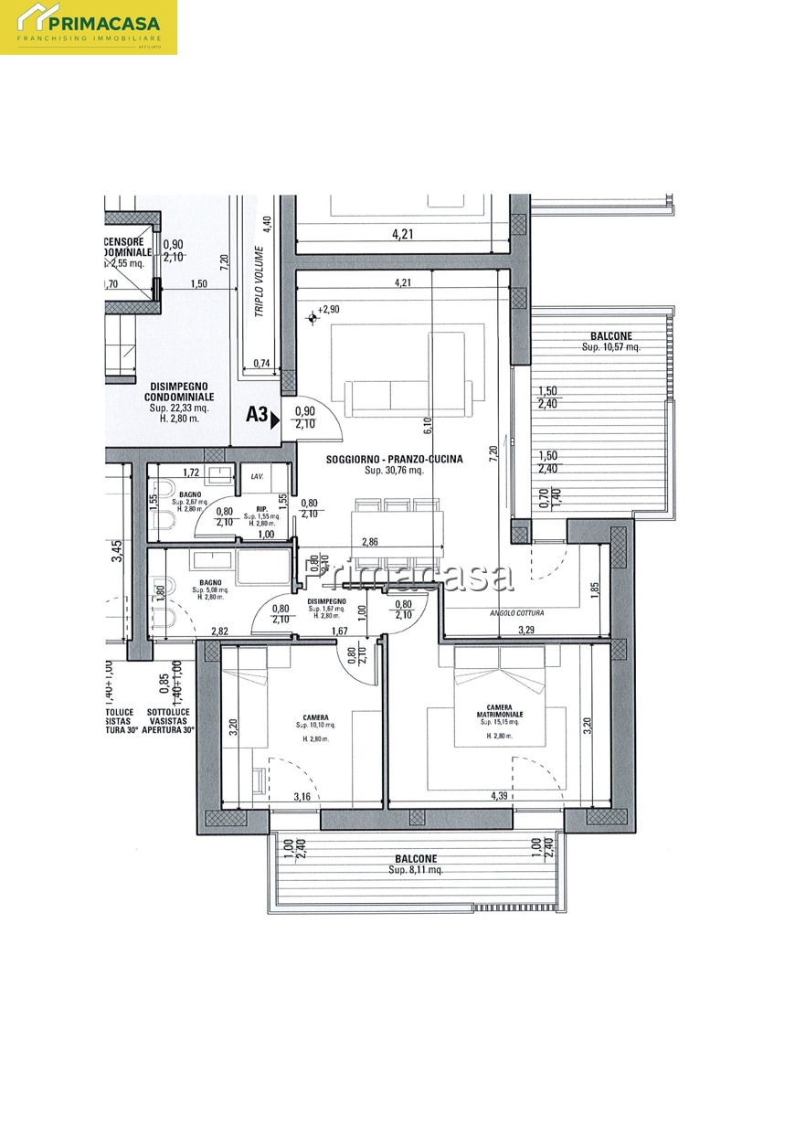 Appartamento al primo piano con ampia loggia , internamente, così composta: