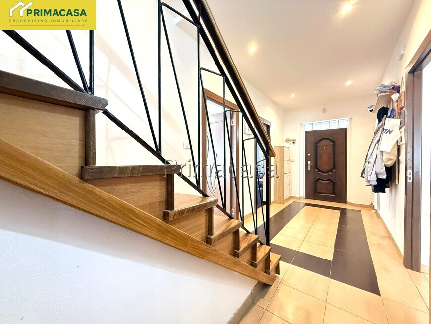 L'abitazione principale, disposta su due livelli fuori terra, si compone di ingresso su ampio salone con scala a vista, cucina abitabile comunicante col soggiorno, sala da pranzo, studio di 18 mq e bagno finestrato al piano terra; al piano primo 4 camere da letto matrimoniali. La dépendance invece, sempre disposta su due livelli, si compone di una comoda cucina con sala da pranzo, ripostiglio, bagno finestrato, camera da letto e camera ad uso sala da biliardo. Garage, ripostigli esterni, fienile e porticato affacciati sul giardino riservato già piantumato e completo di piscina.