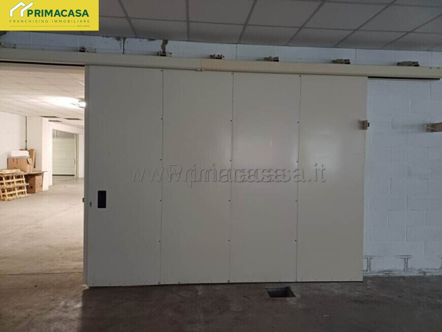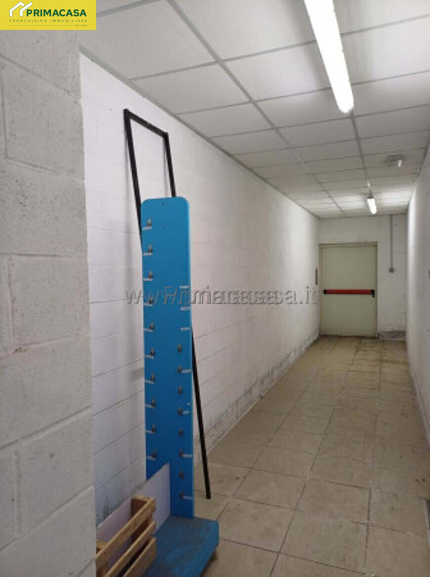 Si compone di ampia zona con pilastri e finestrelle e neon al soffitto. Portone con apertura laterale. Ulteriore porta laterale per uscita nel corridoio.