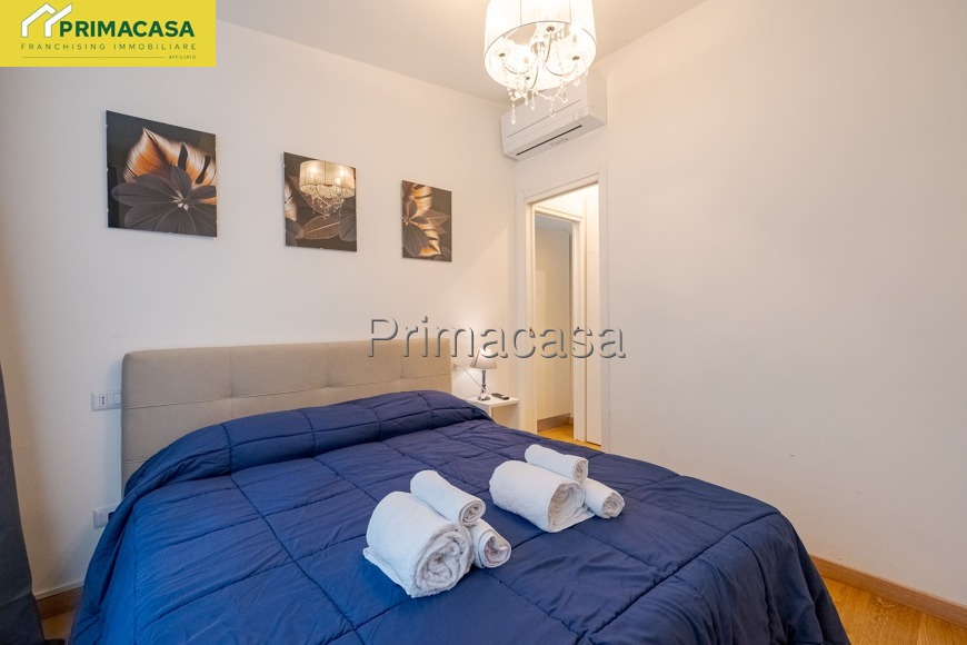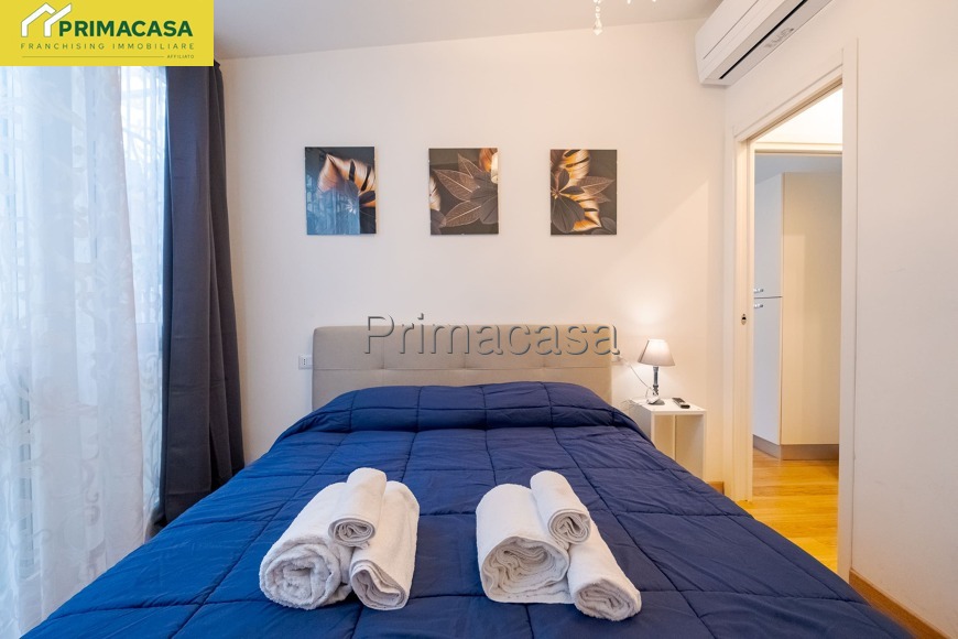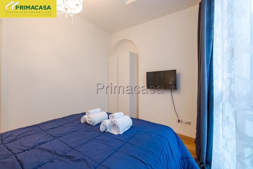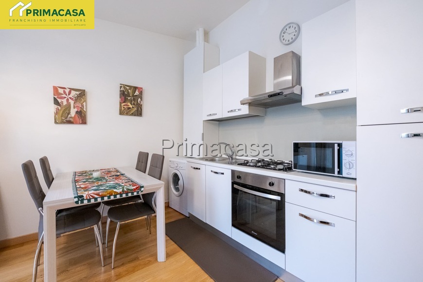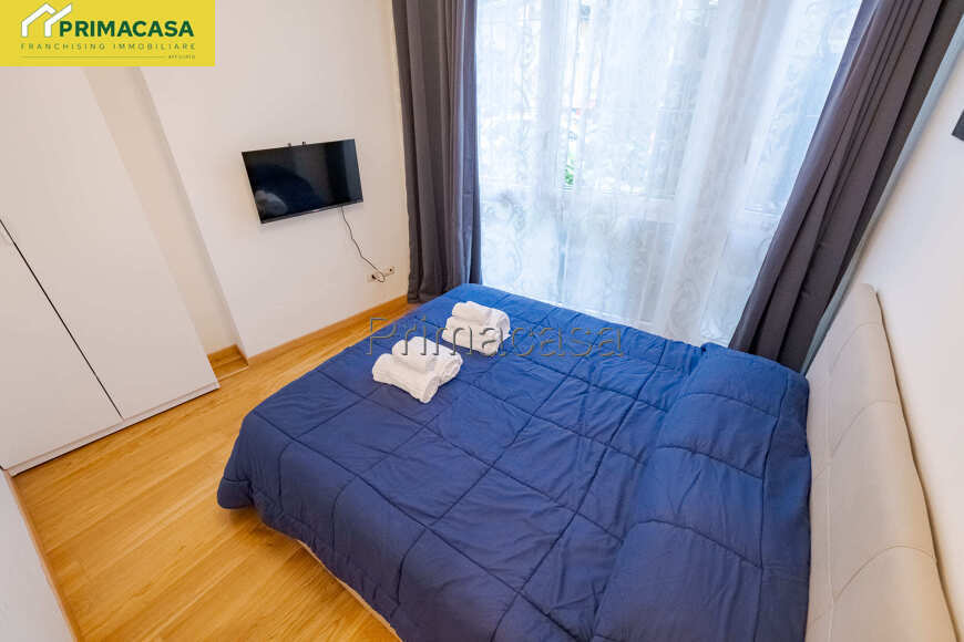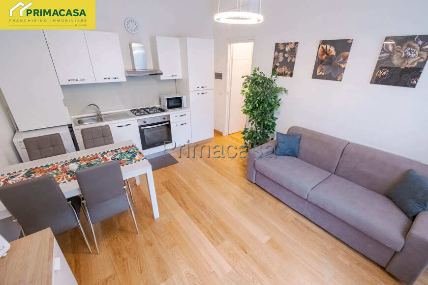 L'appartamento è composto da un soggiorno con cucina a vista attrezzata (forno, lavatrice, macchina del caffè), un divano letto, bagno con box doccia e camera da letto matrimoniale.