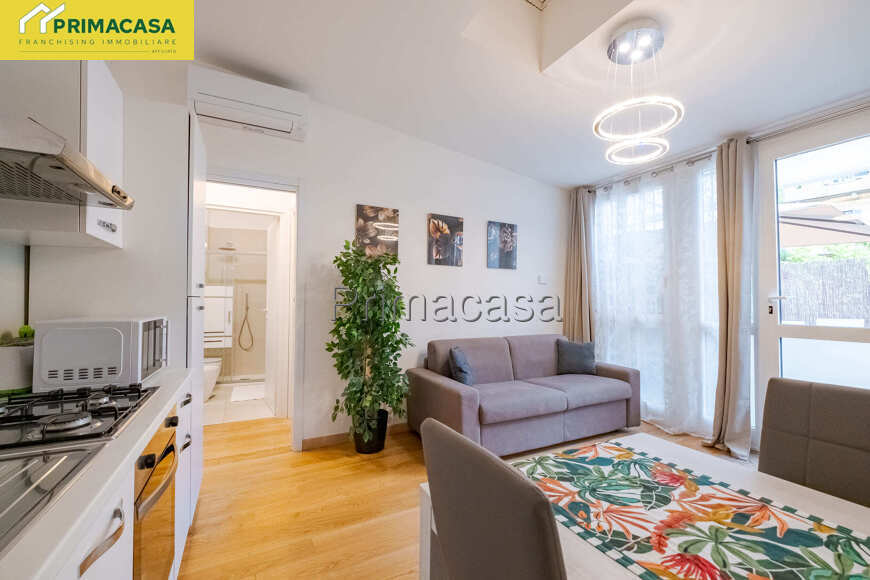 L'immobile è composto da : ingresso indipendente dal giardino privato attrezzato con ombrellone e lettini, tavolo e sedie.