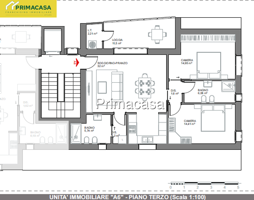 Appartamento al piano attico con ampia loggia , internamente, così composta: