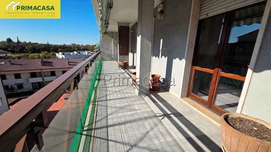 In posizione tranquillissima ma comoda a tutti i servizi, inserito in complesso di tipo signorile, ampio appartamento ultimo piano con grande terrazzo. L'appartamento è l'unico nel pianerottolo e confina con un'altra unità da un solo lato ed è così composto: si accede, attraverso un portone blindato, direttamente nella comoda zona ingresso che può ospitare un ampio armadio guardaroba, sulla sinistra troviamo il soggiorno anch'esso molto ampio e luminoso confinante con la cucina abitabile; sia dal soggiorno che dalla cucina, si ha accesso al grande terrazzo (di circa 27 mq.) attraverso tre grandissime porte finestre che garantiscono ariosità e luce; nella zona notte troviamo tre camere da letto (due matrimoniali ed una singola), due bagni ed un ripostiglio. La camera matrimoniale più spaziosa ha anche un comodo balcone dedicato. L'immobile dispone inoltre, in proprietà esclusiva, di una porzione di sottotetto di dimensioni uguali all'appartamento sottostante attualmente non collegato allo stesso. A completamento della proprietà abbiamo anche una cantina ed un comodo garage. Ottima opportunità!
