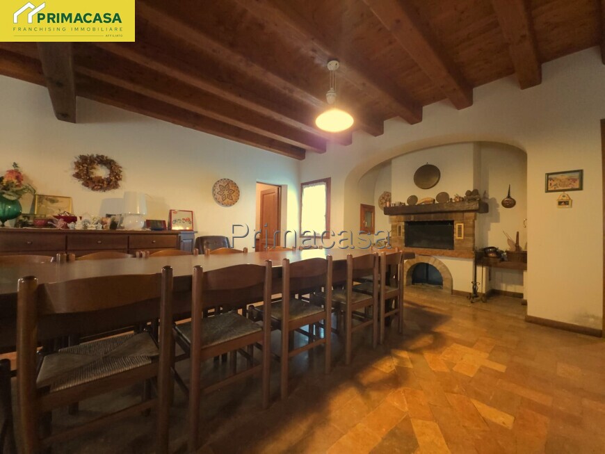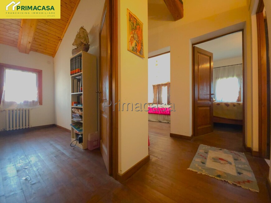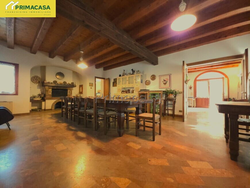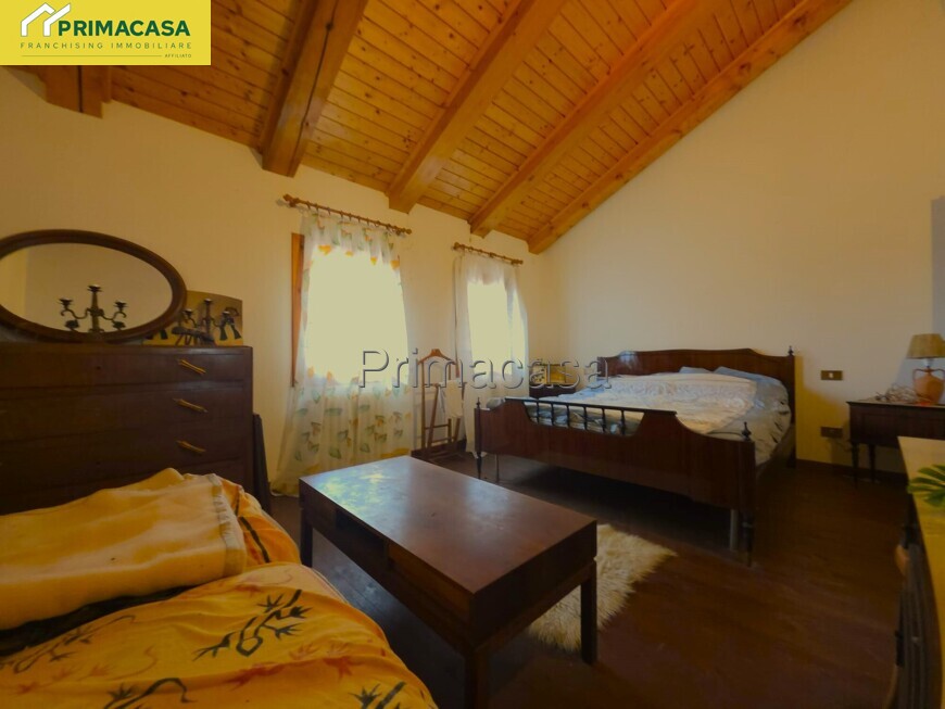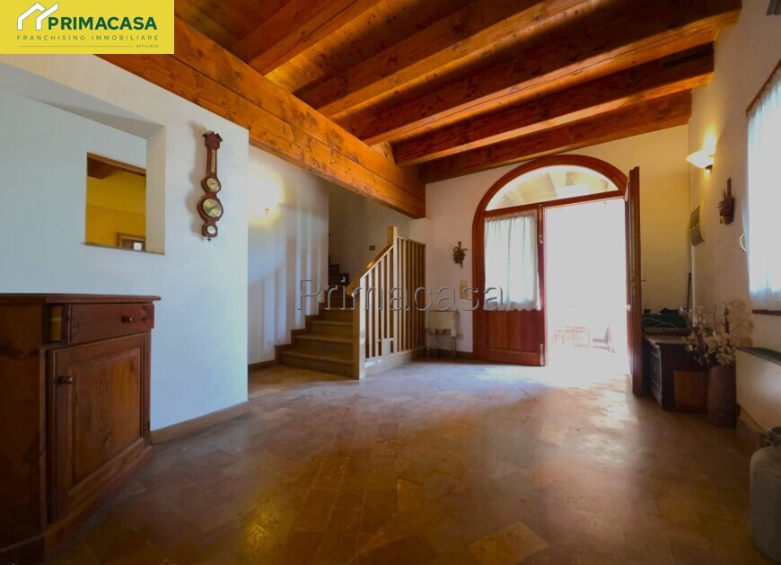 L’abitazione principale si compone di un ingresso che conduce a un ampio soggiorno di oltre 40 mq, arricchito da un suggestivo camino a legna; proseguendo troviamo una cucina separata e altre due stanze, ideali come studio, sala da pranzo o locali di servizio. Completa il piano terra un bagno finestrato con doccia. La zona notte, sviluppata al piano superiore e caratterizzata da travatura a vista, offre ben sei camere da letto e due bagni finestrati completi di tutti i sanitari. Entrambi i piani presentano una superficie di oltre 245 mq calpestabili in totale, garantendo ambienti ampi e ben distribuiti.