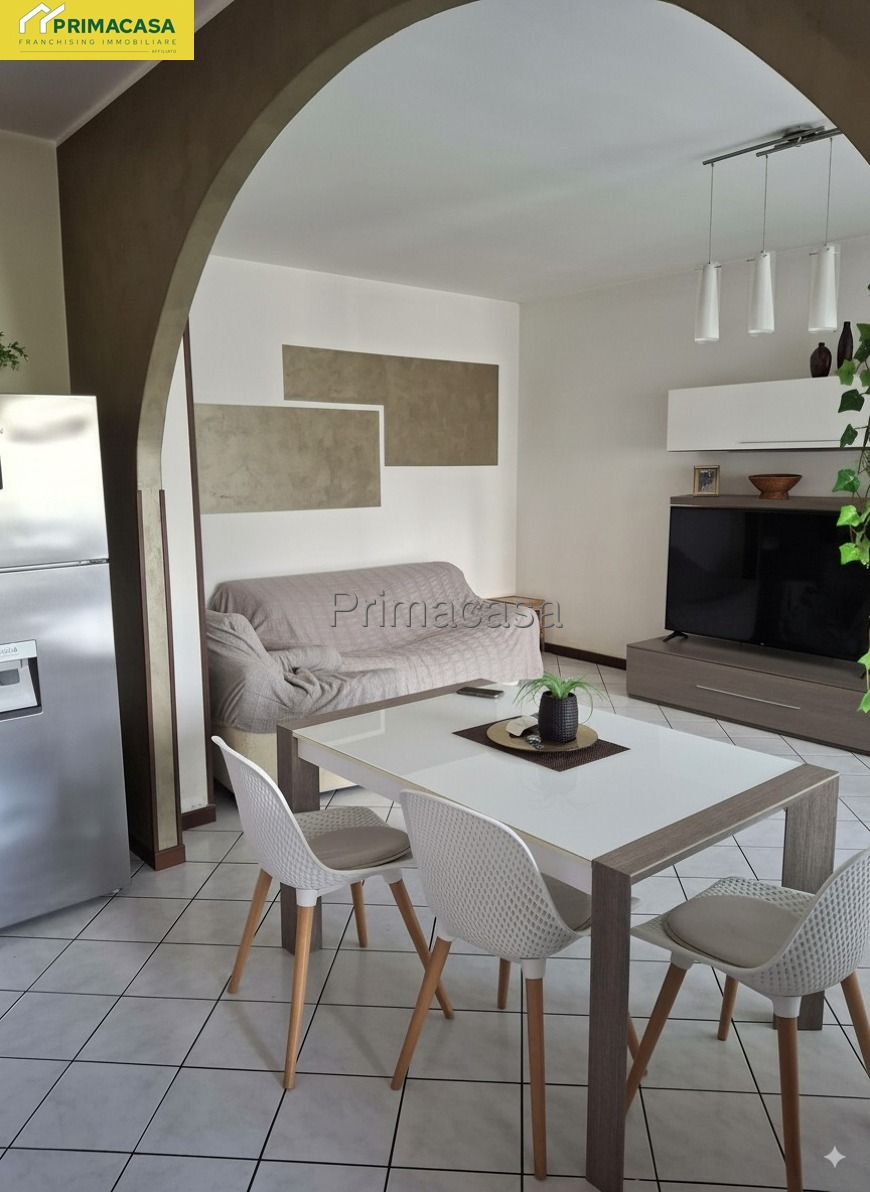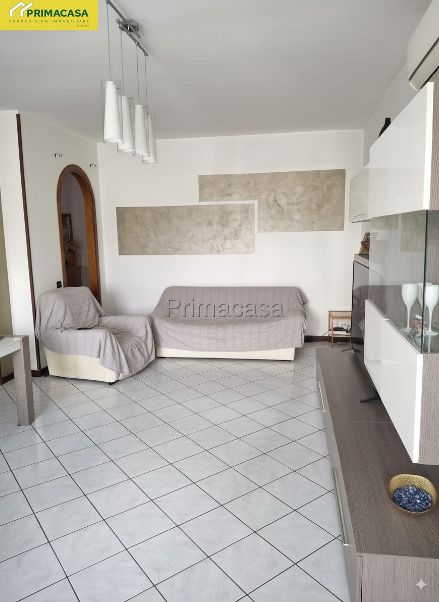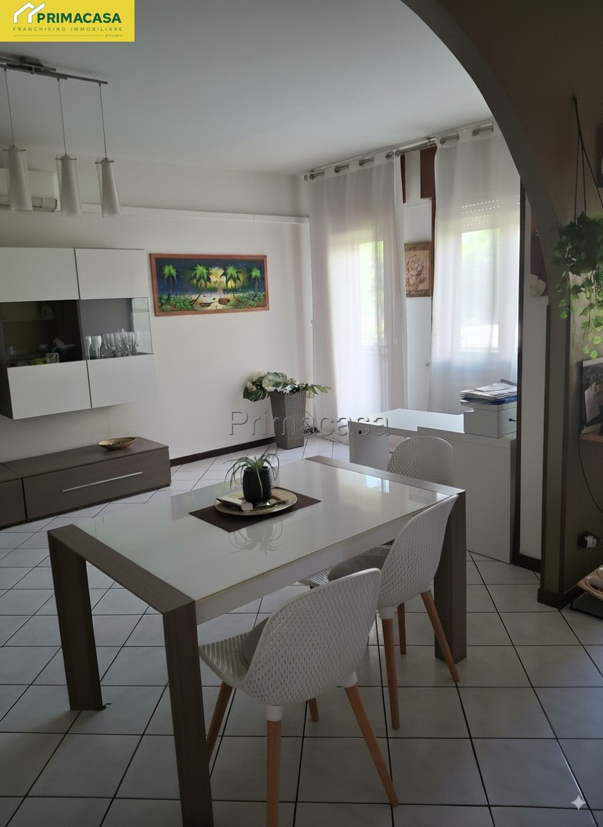 Situato al primo piano e a breve distanza dal centro città, questo spazioso appartamento offre una combinazione perfetta di comfort e stile. L'ingresso si apre su un luminoso soggiorno, arredato con gusto e caratterizzato da un'elegante parete attrezzata con TV e divano. Adiacente al soggiorno, troverete una zona pranzo accogliente con un tavolo moderno e sedie di design, ideale per cene in famiglia o con amici.