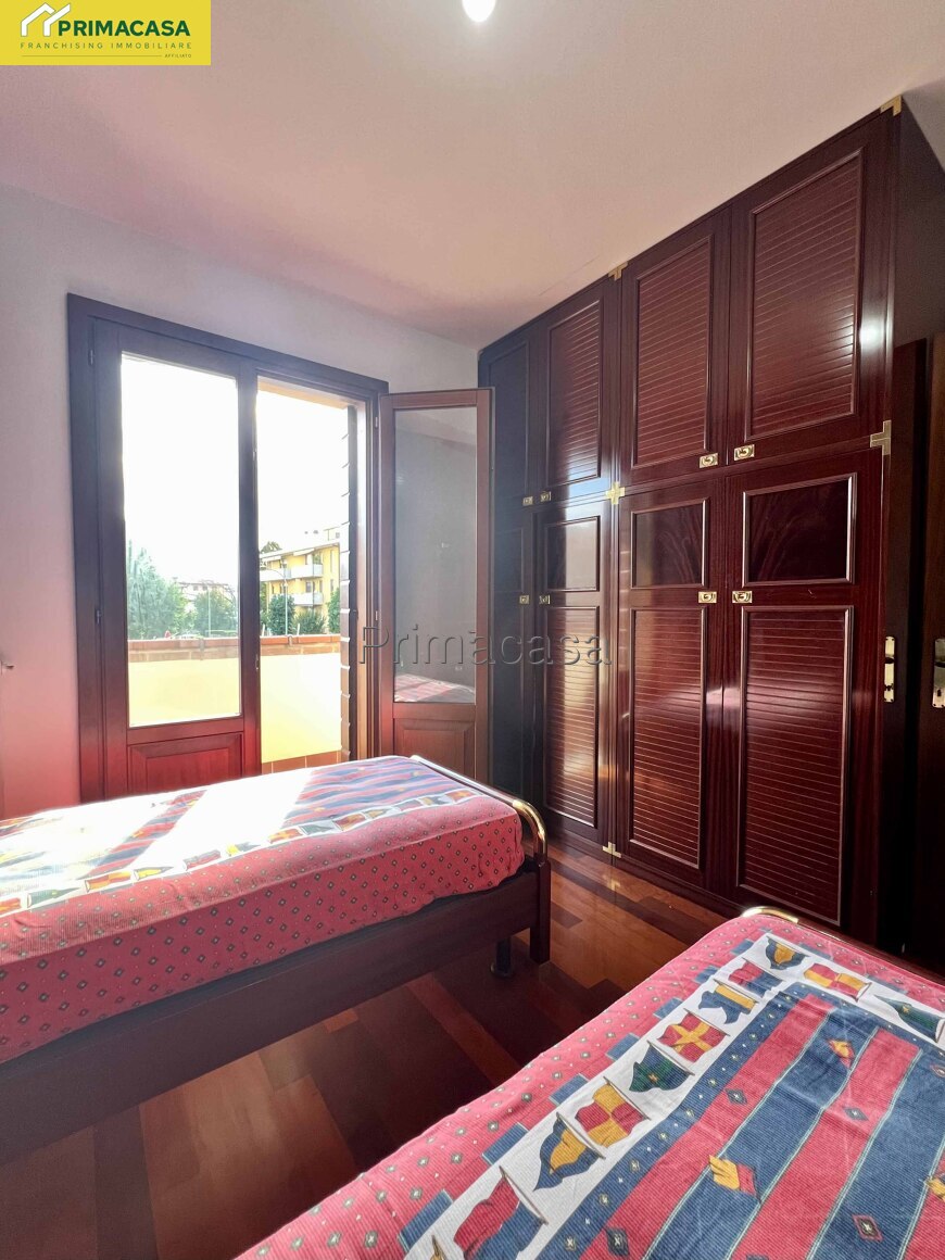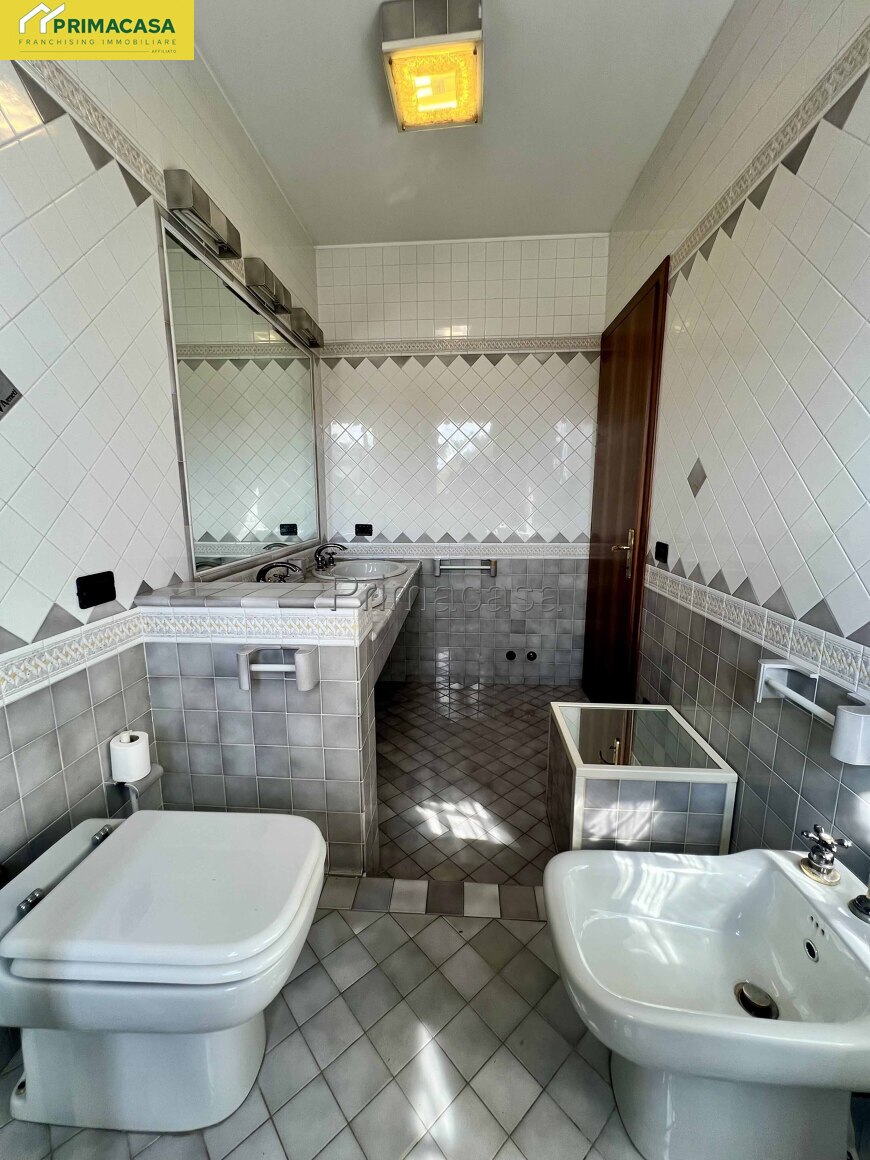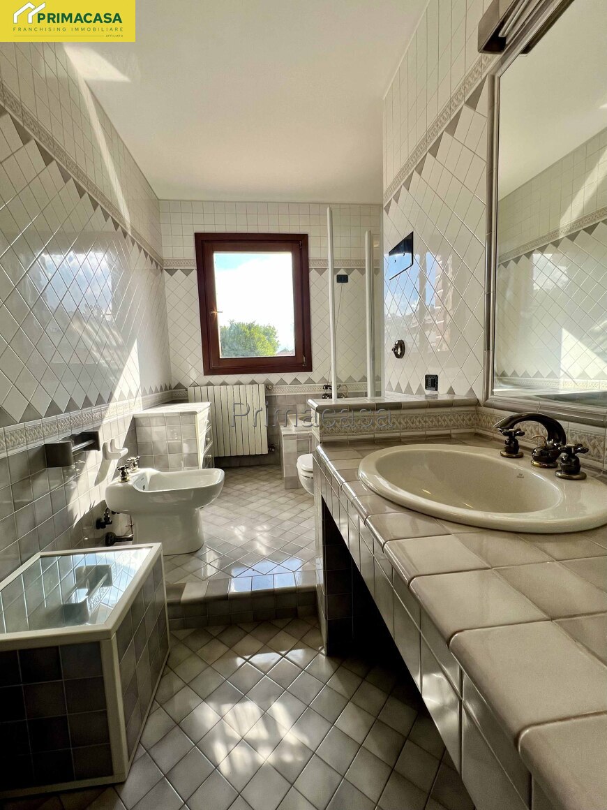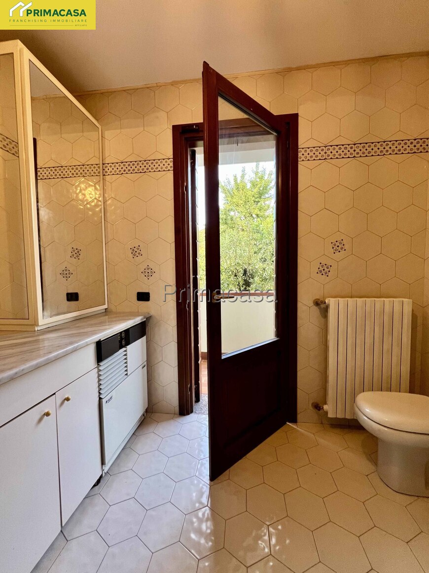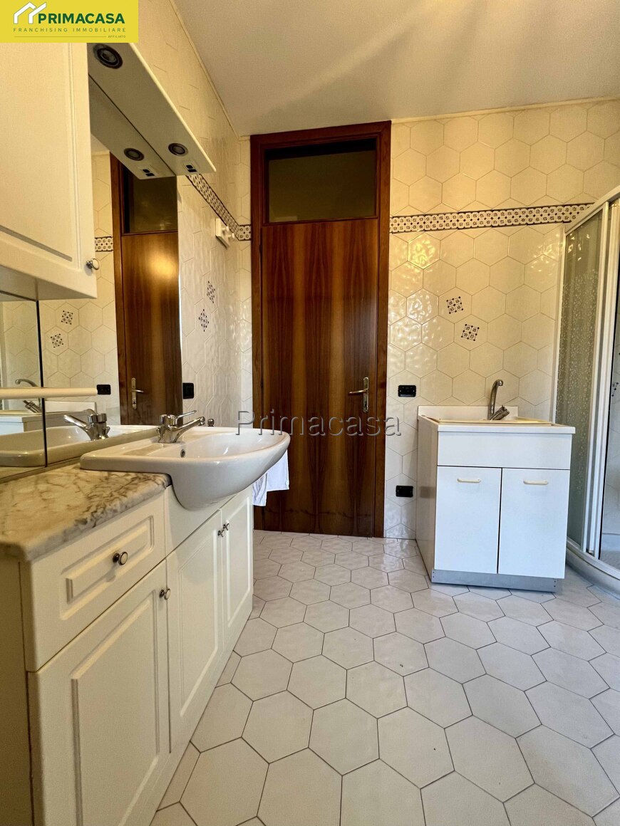 Salendo al primo piano, la zona notte offre tre camere da letto (una matrimoniale, una doppia e una singola) ognuna con il proprio balcone, oltre a un bagno finestrato molto spazioso, completamente piastrellato e dotato si di vasca che di doccia.