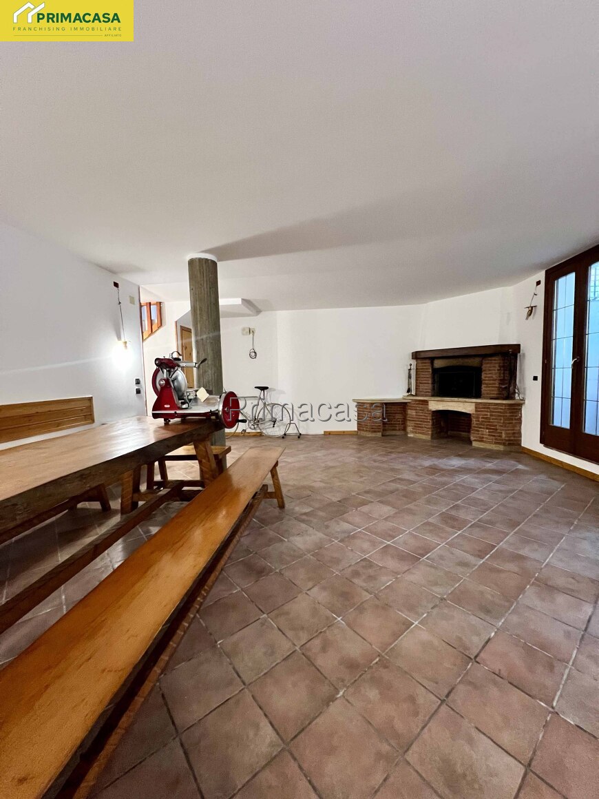 Al piano interrato si trova una grande taverna con caminetto, ambiente conviviale per le cene in compagnia e feste.