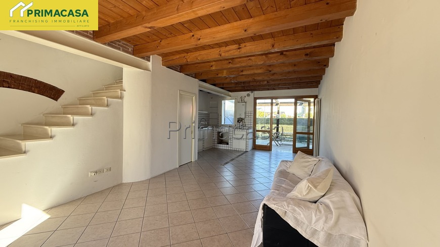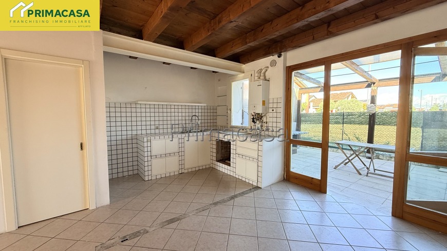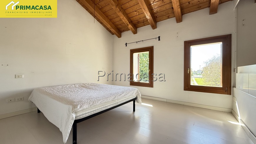 NOSTRA ESCLUSIVA. Proponiamo in vendita porzione di bifamiliare disposta su due livelli. Al piano terra luminosa zona living con cucina a vista, bagno. Al primo piano due camere, bagno finestrato e comodo ripostiglio ideale per essere adibito a cabina armadio. Completano, da un lato un grazioso giardino privato e dall'altro ampio pergolato ideale per momenti di convivialità, godibile durante tutto l'anno; posto auto riservato. Collocato in tranquilla e verde zona residenziale in ampliamento, questo immobile dista pochi minuti dal centro di Stigliano, da tutti i principali servizi e dai mezzi pubblici che collegano Padova e Treviso.