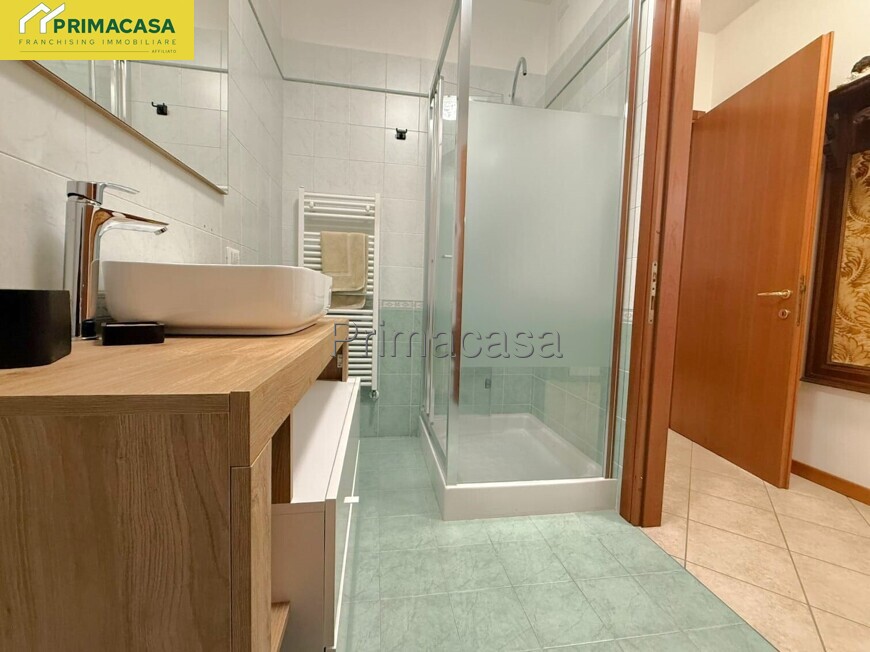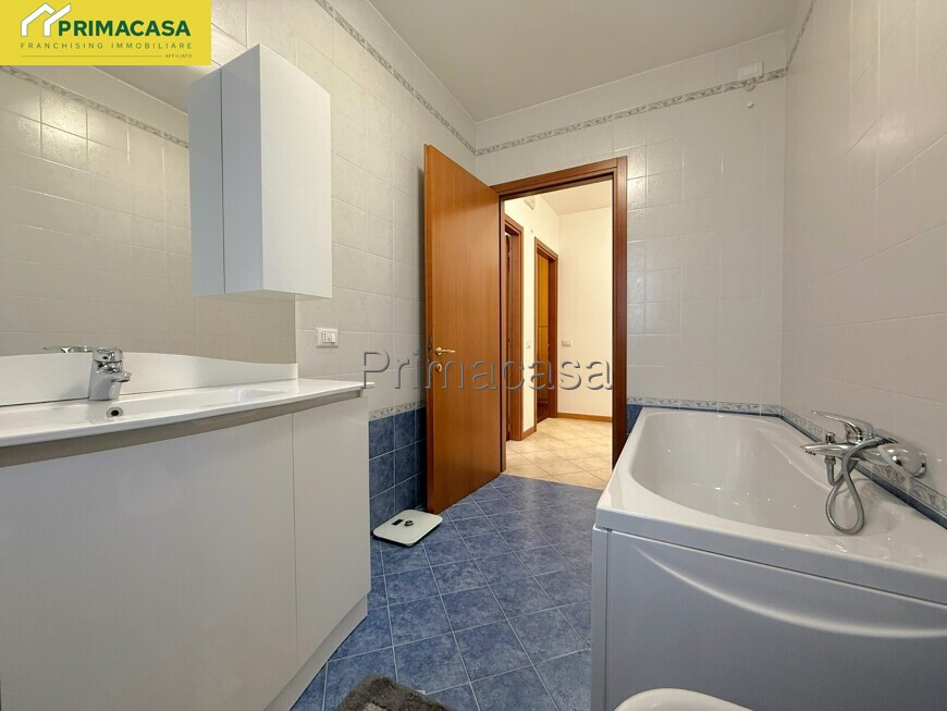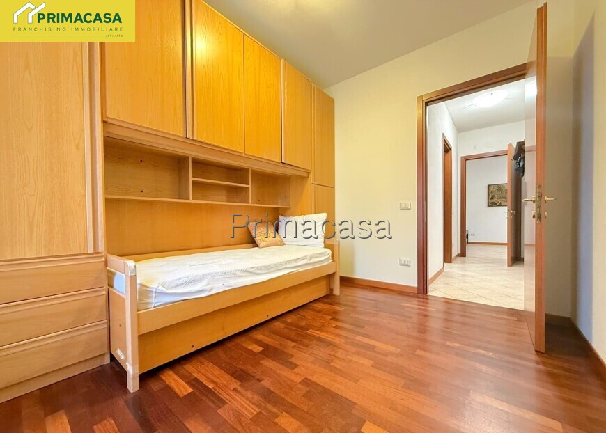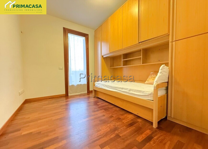 L’ingresso si apre su un luminoso soggiorno con angolo cottura, con una doppia portafinestra che conduce a una piacevole terrazza esterna, perfetta per momenti di relax all’aria aperta. La zona notte è ben separata e comprende due camere da letto, una matrimoniale e una singola, entrambe dotate di portafinestra con accesso a un secondo terrazzo comunicante, esposto a sud, che garantisce ottima luminosità durante tutto il giorno. L’appartamento dispone di due bagni, uno finestrato con vasca e uno cieco con doccia, entrambi funzionali e ben rifiniti. Il comfort abitativo è assicurato dal riscaldamento autonomo a pavimento, che garantisce una distribuzione uniforme del calore. A completamento della proprietà sono presenti una cantina e un garage situati al piano seminterrato. L’immobile si distingue per la sua posizione strategica ma allo stesso tempo molto tranquilla.
