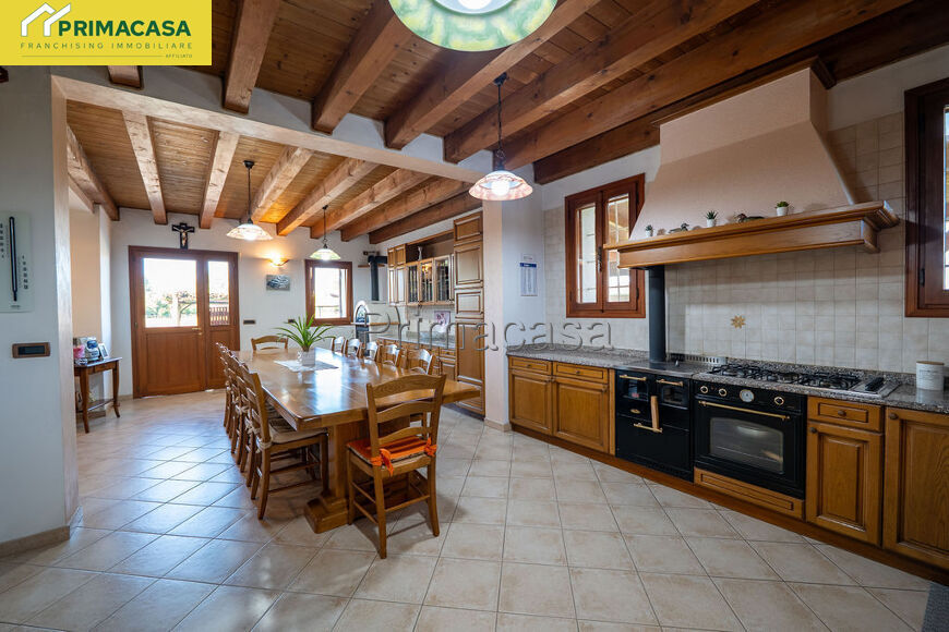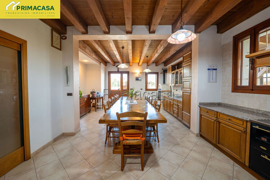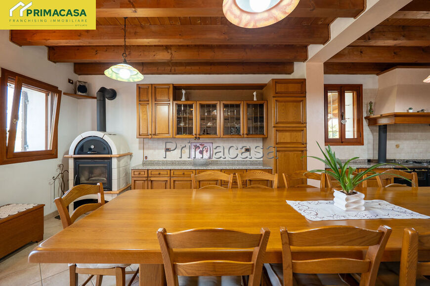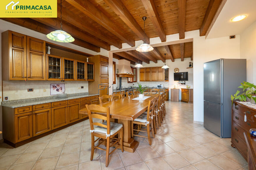 Gli spazi accessori non mancano: cantina con lavanderia, veranda luminosa, garage e soprattutto un ampio capannone indipendente, ideale come grande taverna, laboratorio o per chi ha necessità di spazi per attività e strumenti anche agricoli.