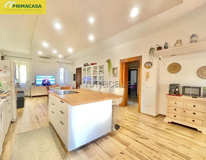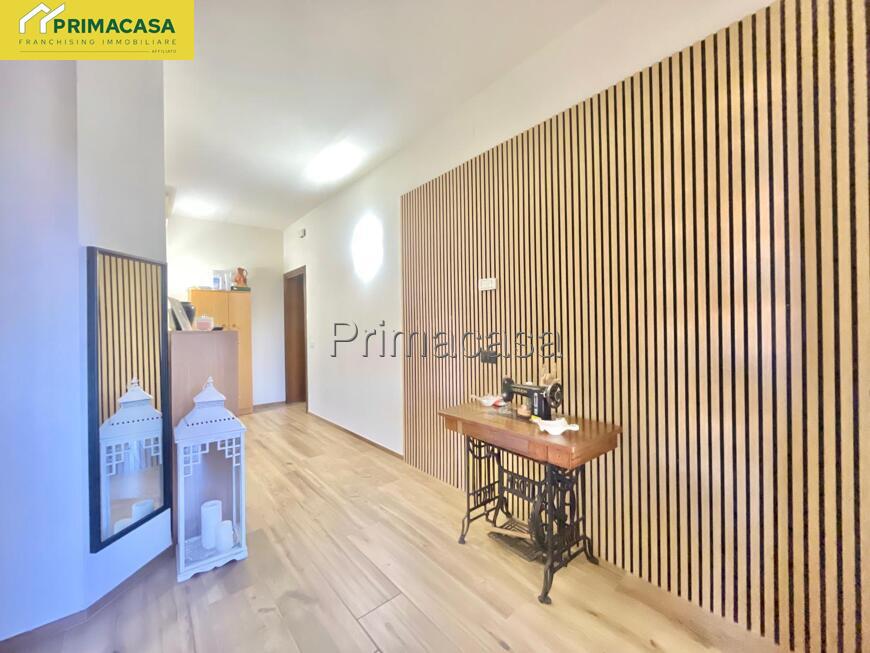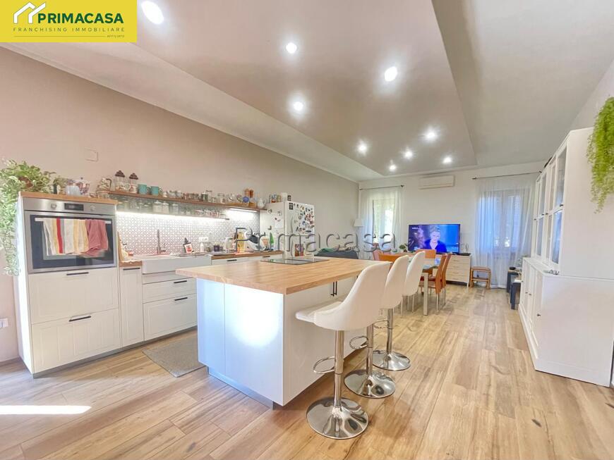L'immobile si sviluppa su un unico livello, dislocandosi in un'ampia e luminosa zona giorno open-space con cucina a vista, isola, living finestrato e ripostiglio. La zona notte, collegata da un corridoio, presenta due spaziose camere da letto matrimoniali e un bagno finestrato.