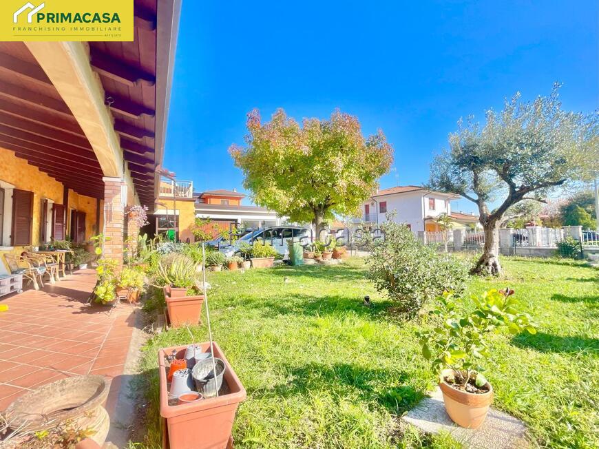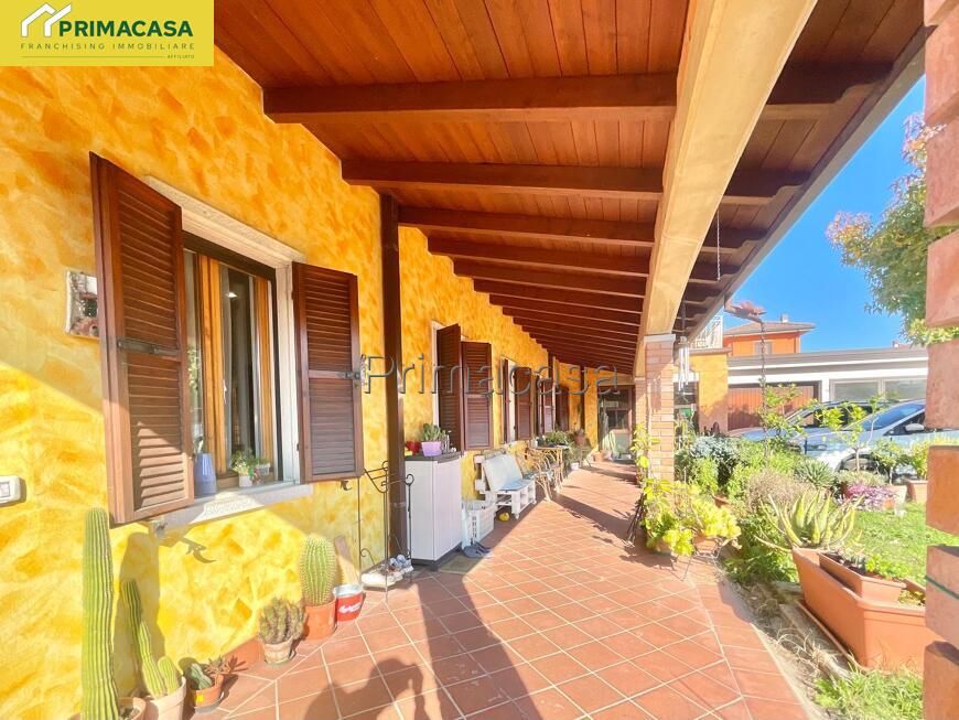 All'esterno dell'abitazione troviamo un meraviglioso porticato con affaccio sul giardino piantumato, che ci collega alla grande taverna fornita di un angolo cottura, un caminetto, un bagno e zona lavanderia.