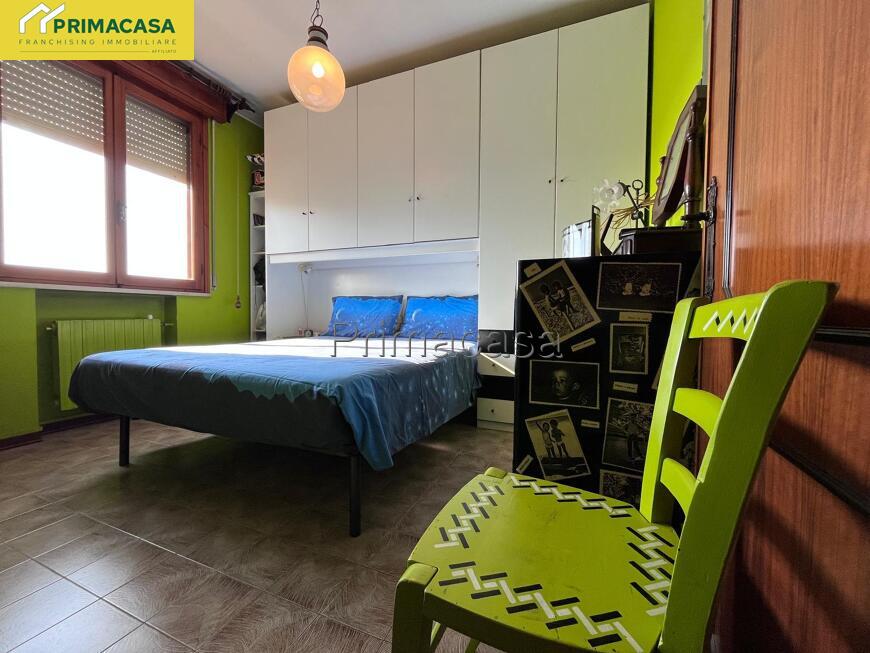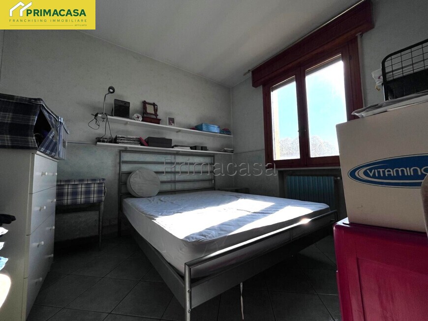 Piano primo: disimpegno, due camere da letto (una matrimoniale e una singola), studio, bagno con vasca e garage.