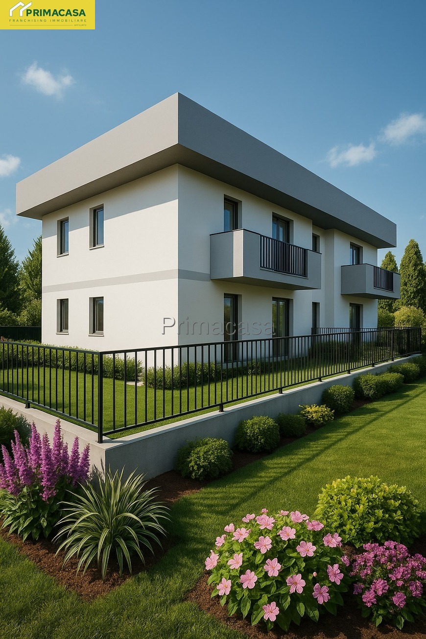 NUOVO: in tranquilla zona residenziale a pochi passi dal centro paese, in contesto quadrifamiliare, nuovo appartamento trilocale al piano terra con giardino privato (150 mq circa) composto di soggiorno con angolo cottura, 2 camere matrimoniali e 2 bagni finestrati. Garage doppio di 40 mq circa al piano interrato. Fotovoltaico privato da 3 kW, riscaldamento a pavimento in pompa di calore, possibilità di scelta delle finiture. Rif. 2827