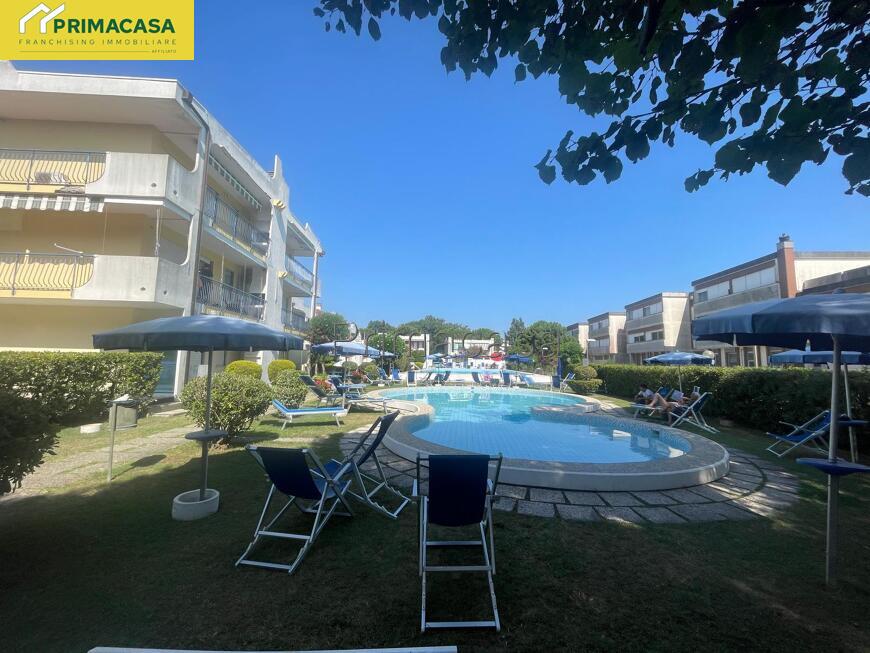 In residence signorile e ben curato, dotato di ampia area verde, piscina e campo da calcetto, proponiamo in vendita appartamento al piano rialzato, ideale sia come abitazione principale che come residenza per le vacanze.