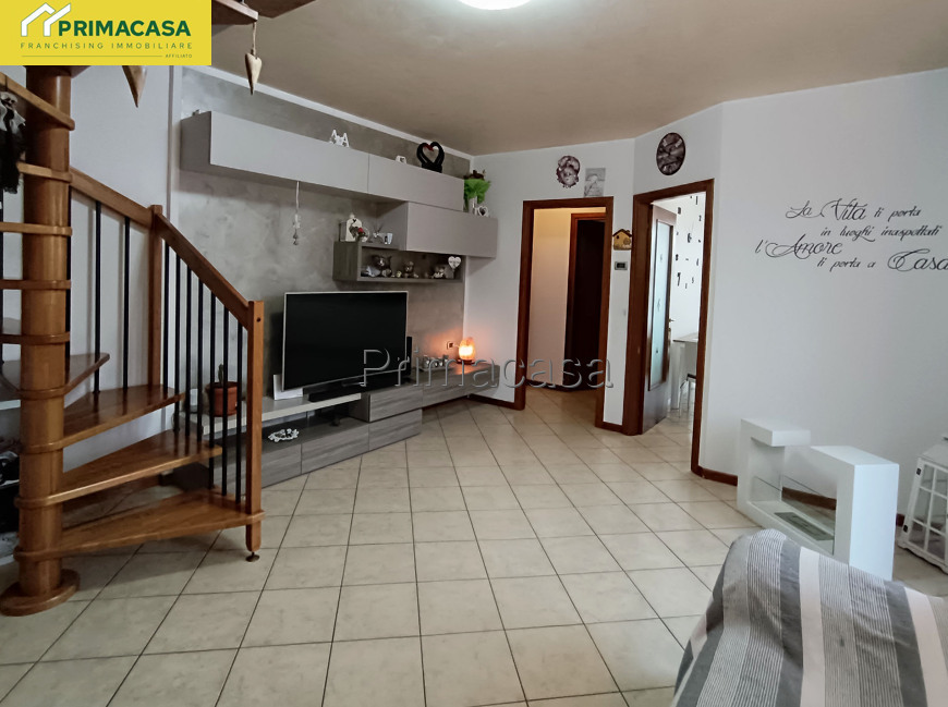 Proponiamo in zona centrale ma tranquilla, un moderno appartamento in duplex, inserito in una recente palazzina di poche unità e con bassi costi di gestione. La soluzione si trova al piano primo, si presenta in ottime condizioni pronta per essere abitata da subito ed è così composta: luminoso soggiorno con cucina abitabile, camera, bagno disimpegno e tre terrazze al piano principale. Al piano superiore troviamo la seconda zona notte mansardata, composta da due camere (una con angolo ripostiglio) finestrate, bagno e disimpegno. Completano la proprietà un garage ed un posto auto al piano terra. L’appartamento viene venduto parzialmente arredato, pronto per essere vissuto senza bisogno di ulteriori interventi. RIF 41