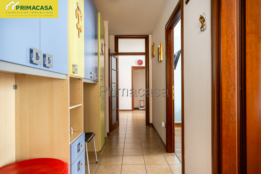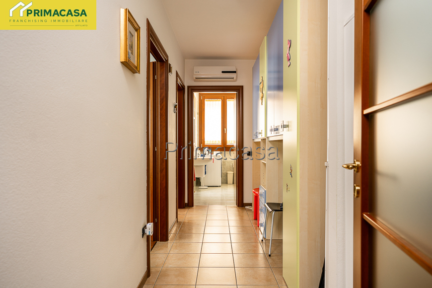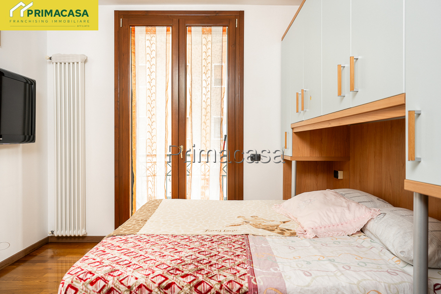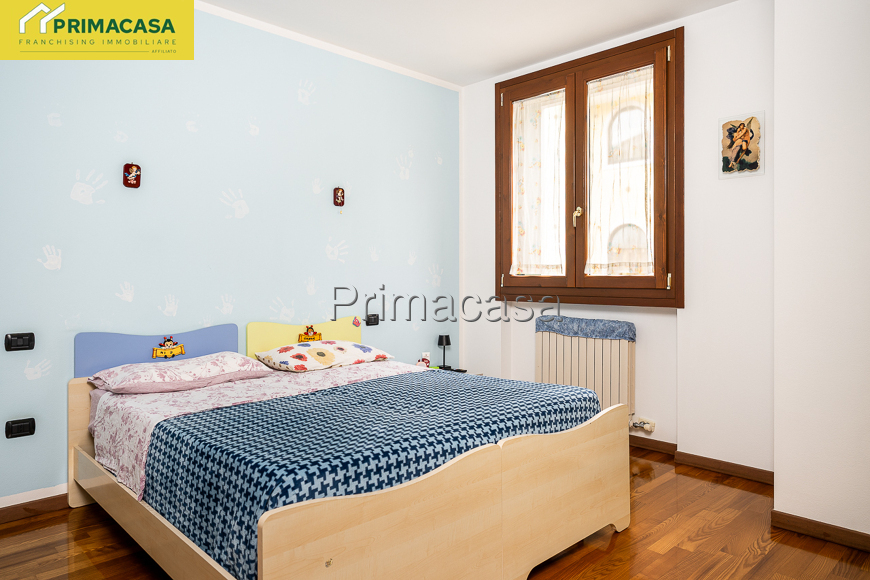 A pochi passi dal centro paese, in via chiusa al traffico, trilocale al piano primo con ascensore composto da soggiorno con angolo cottura, camera matrimoniale, camera doppia, bagno finestrato, ripostiglio e 2 balconi. Garage doppio in lunghezza e cantina al piano interrato. Rif. 2833