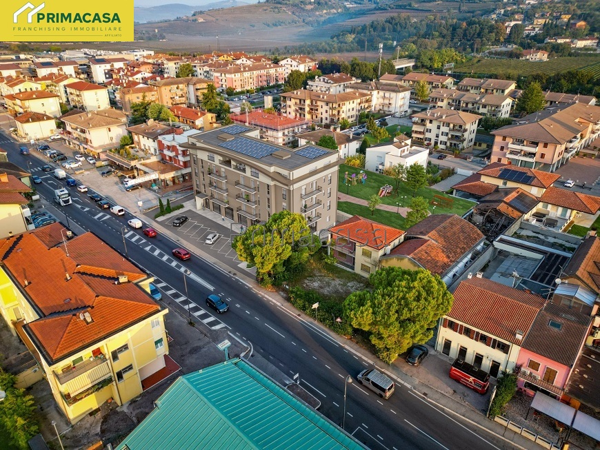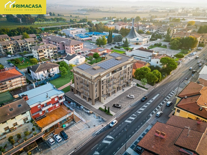 NUOVO COMPLESSO RESIDENZIALE "DIANA": Attico in classe A4 con terrazzo coperto al quarto ed ultimo piano composto di soggiorno con angolo cottura (41 mq), 3 camere da letto, 2 bagni e 3 balconi. Garage. Riscaldamento a pavimento in pompa di calore, impianto fotovoltaico condominiale, VMC, impianto di climatizzazione, infissi in PVC, cappotto da 14 cm. Rif. 2841