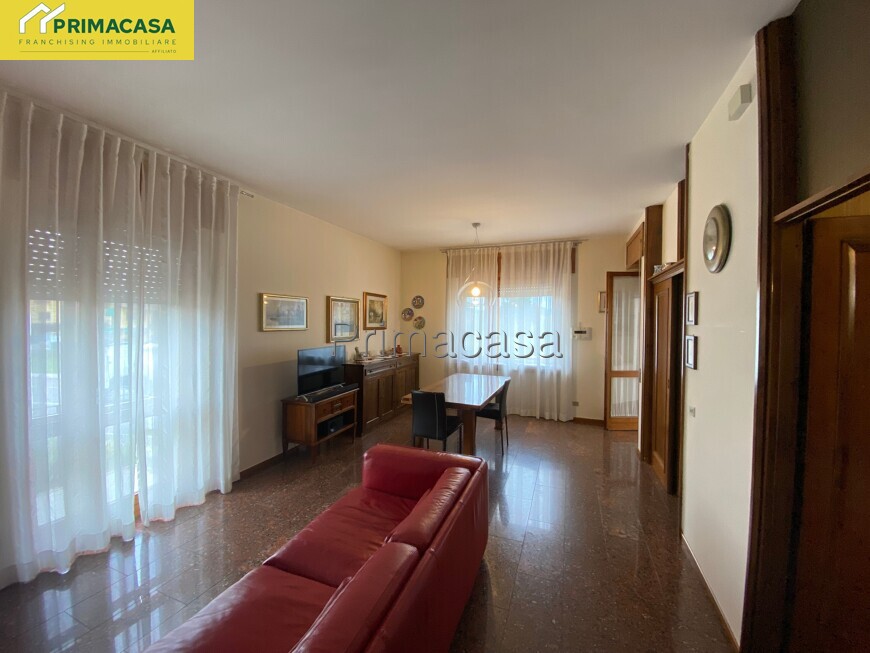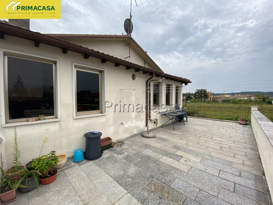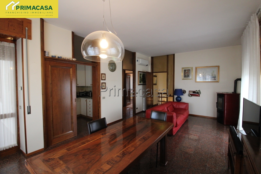 Appartamento in bifamiliare al piano primo con ingresso indipendente e composta da un soggiorno grande, cucina abitabile, 2 camere, bagno, lavanderia, terrazzo e doppio garage. Giardino e terreno in comune.