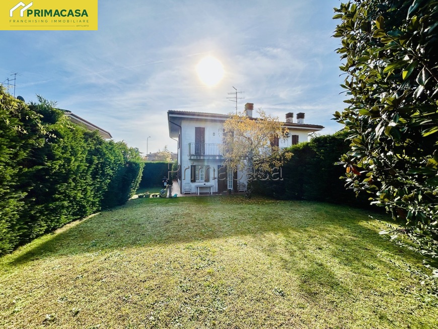 In tranquilla zona residenziale, all'interno di una via a fondo chiuso, proponiamo in vendita Porzione di Bifamiliare angolare caratterizzata da ampie metrature e con giardino privato disposto sui tre lati dell’abitazione. L'immobile si sviluppa su un lotto di circa 500 mq. e dispone di ingresso pedonale e carraio indipendenti. La casa presenta finiture originali dell'epoca ed è composta al piano terra da ampio soggiorno con cucina a vista dalla quale si accede al giardino sul retro di circa 250 mq., ideale per momenti di relax all'aperto o con la possibilità di realizzare una piscina privata, ideale per valorizzare ulteriormente lo spazio esterno e godere del massimo confort, mentre piano primo troviamo le tre camere da letto i doppi servizi e due balconi, infine al piano interrato ampia taverna con camino, bagno, lavanderia e autorimessa doppia in larghezza. Soluzione esclusiva per chi cerca indipendenza, tranquillità e spazi personalizzabili.