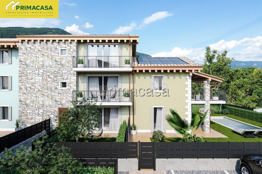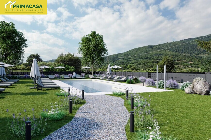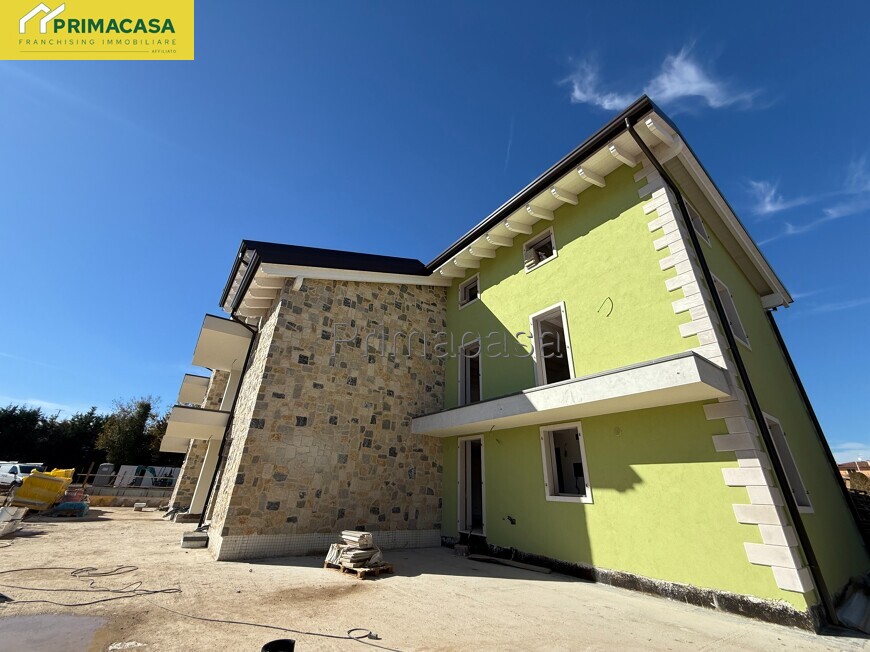 zona giorno con portico, 3 camere, terrazza, doppio bagno e garage di 60 mq.