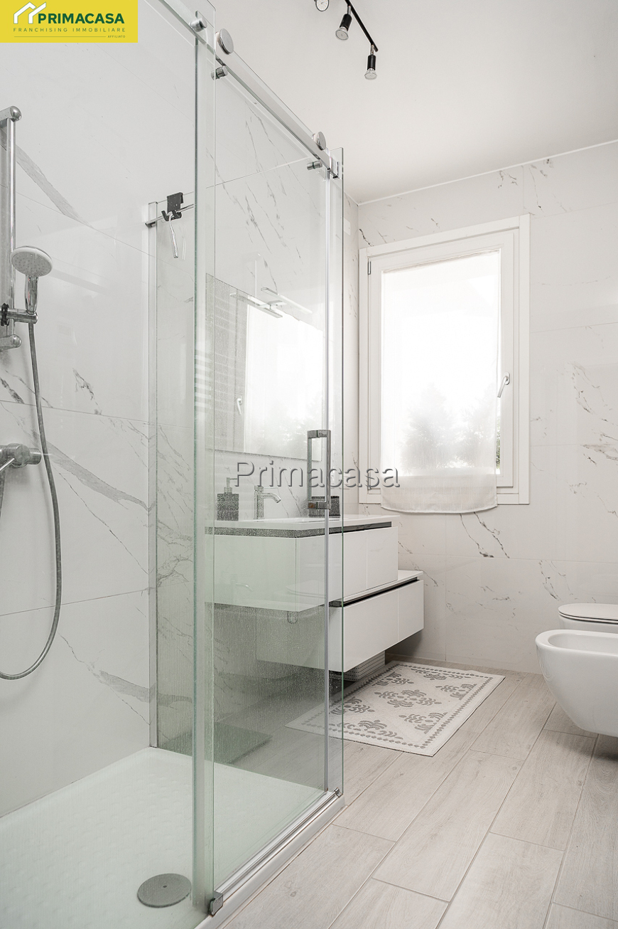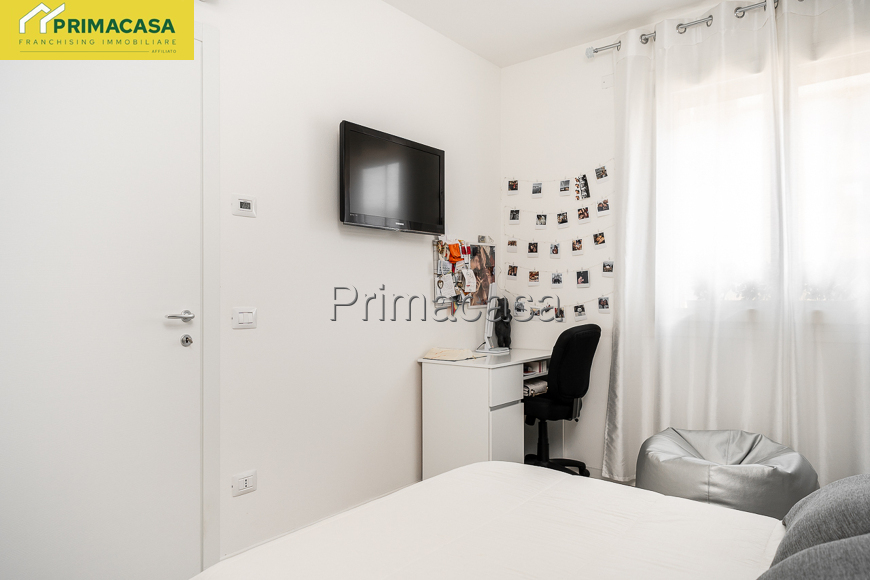 Borgo Vittoria, costruzione di pochi anni, al primo piano, ampio 5 vani con terrazzo. Ampio soggiorno con cucina entrambi affacciati su spaziosa terrazza coperta, tre camere, due bagni, altro balcone di servizio. Ampio garage di pertinenza. Tapparelle elettriche, serramenti con vetro triplo, fotovoltaico 3Kwh, impianto di riscaldamento a pavimento in pompa di calore. 395.000,00.