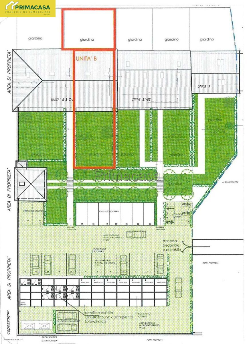 Completano la soluzione due posti auto scoperti, un posto auto coperto e un pratico ripostiglio esterno privato, perfetto per mantenere ordine e funzionalità.