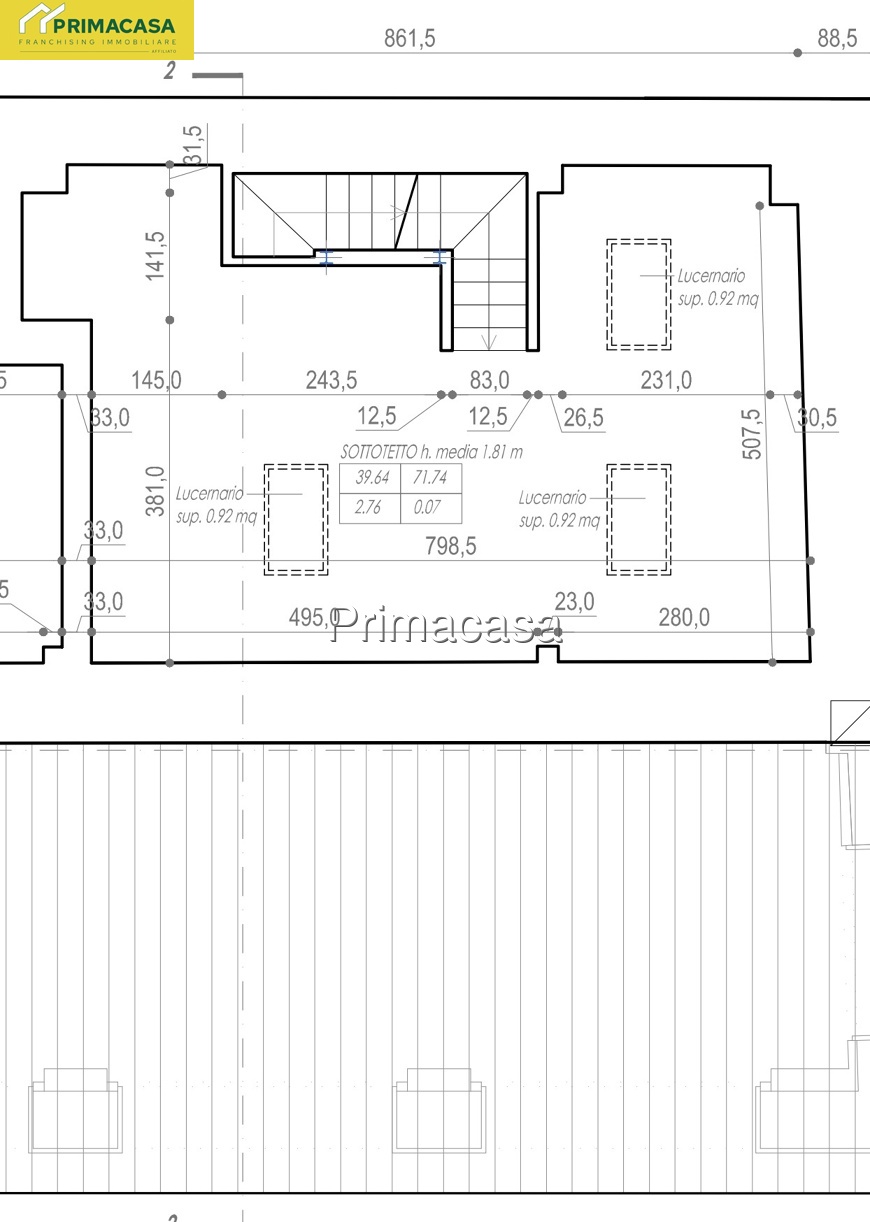 • Secondo piano (mansardato): ampio locale sottotetto da personalizzare