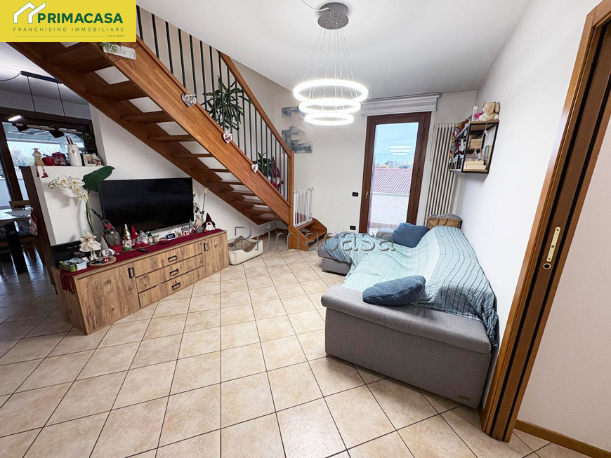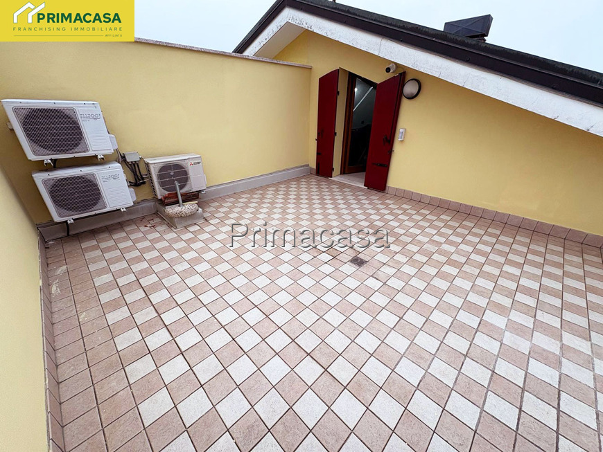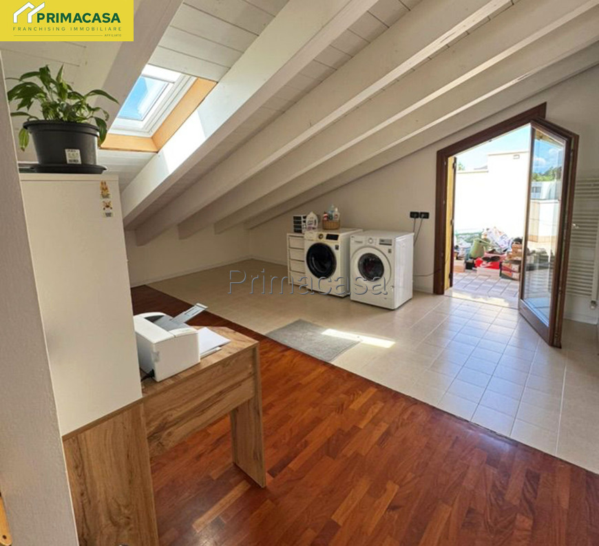 Proponiamo in vendita, in una posizione centrale e comoda ai principali servizi, un recente appartamento sviluppato su due livelli e situato al primo piano di un tranquillo e curato contesto condominiale. L’immobile si distingue per la presenza di ampie terrazze abitabili di circa 30 mq ciascuna, che garantiscono un valore aggiunto all'immobile ed eccellenti spazi esterni da vivere. L’abitazione è così composta: l' ingresso si apre su un luminoso soggiorno dotato di un pratico balcone, proseguendo troviamo una spaziosa cucina abitabile, affacciata sulla prima terrazza principale, completa di pompeiana esterna, perfetta per pranzi, cene e momenti di relax all’aria aperta. La zona notte del piano è composta da un comodo disimpegno e da un moderno bagno finestrato. Al piano superiore si sviluppa la zona mansardata, caratterizzata da soffitti con travi a vista sbiancati ed ambienti accoglienti e versatili, nei quali sono state ricavate due ulteriori stanze ideali come camere, studio o spazi hobby. A completamento del livello troviamo una seconda terrazza abitabile ed un ulteriore poggiolo, che aggiungono pregio e ulteriori sfoghi esterni all’abitazione. La proprietà include infine un garage doppio e un posto auto privato, elementi che conferiscono ulteriore comodità a questa proposta immobiliare. L’appartamento viene venduto parzialmente arredato, pronto per essere vissuto senza bisogno di ulteriori interventi. RIF 50