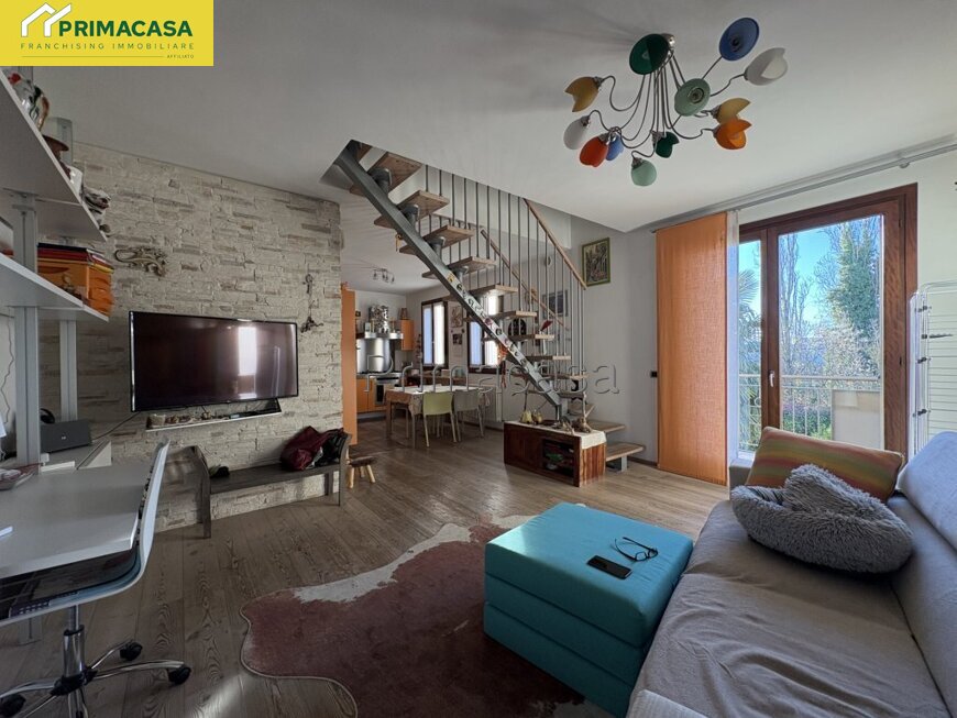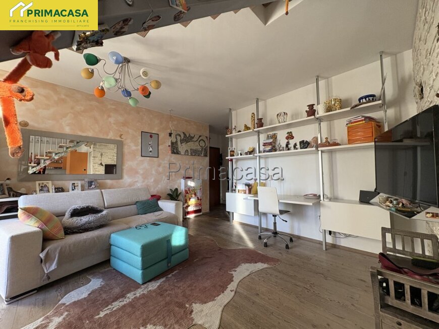 Il piano primo è composto da una luminosa zona giorno openspace con angolo cottura, terrazza abitabile e bagno finestrato completo di tutti i sanitari; Il piano superiore invece è composto da camera matrimoniale, cameretta versatile e secondo bagno con doccia.
