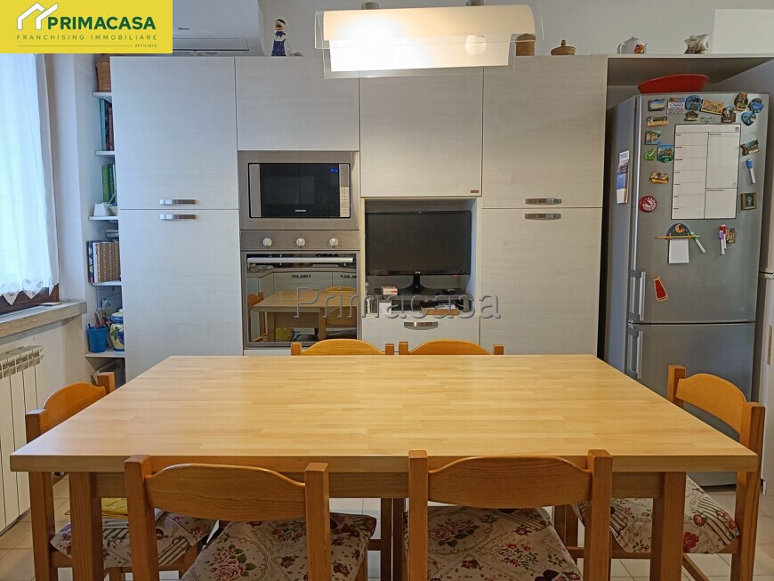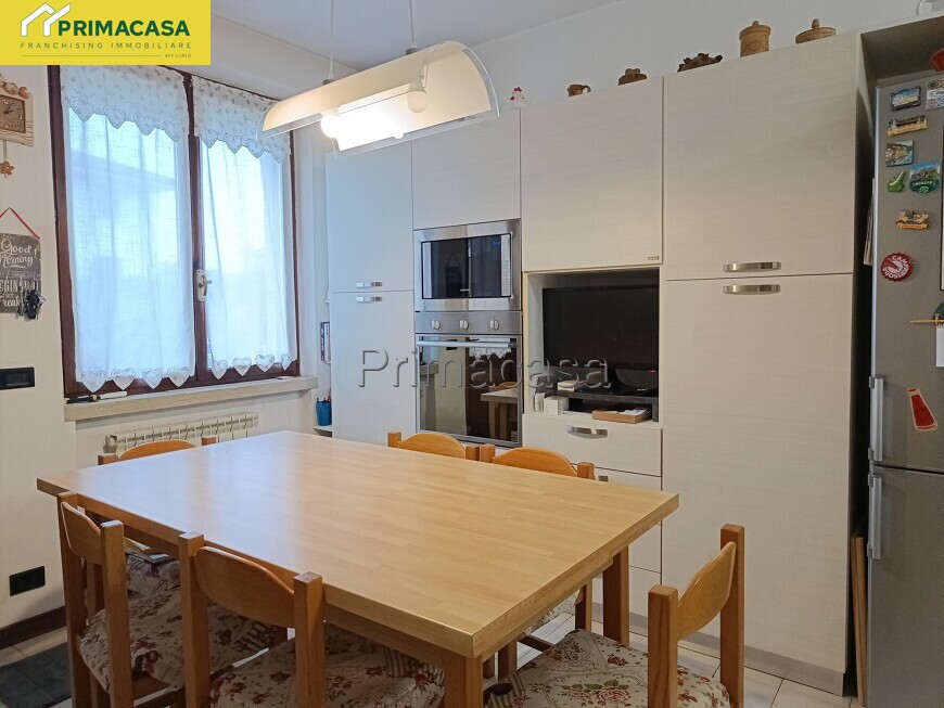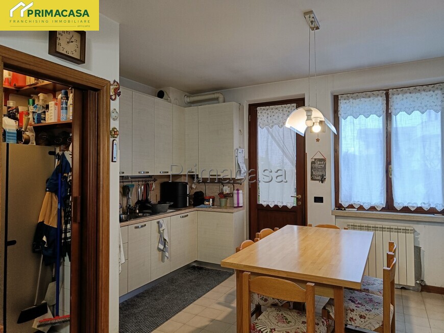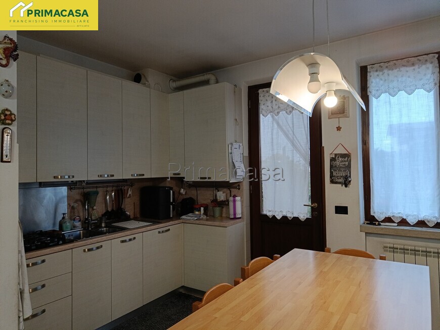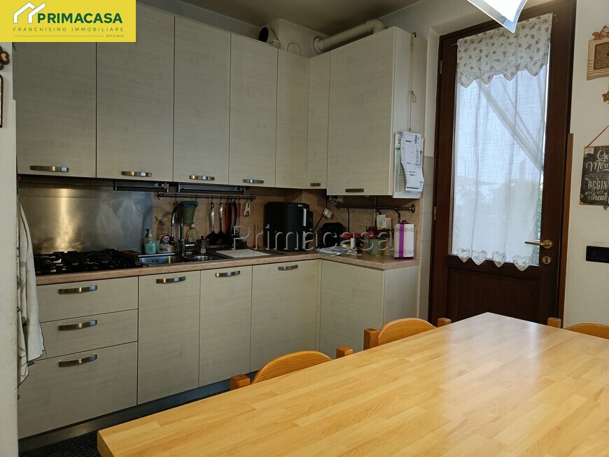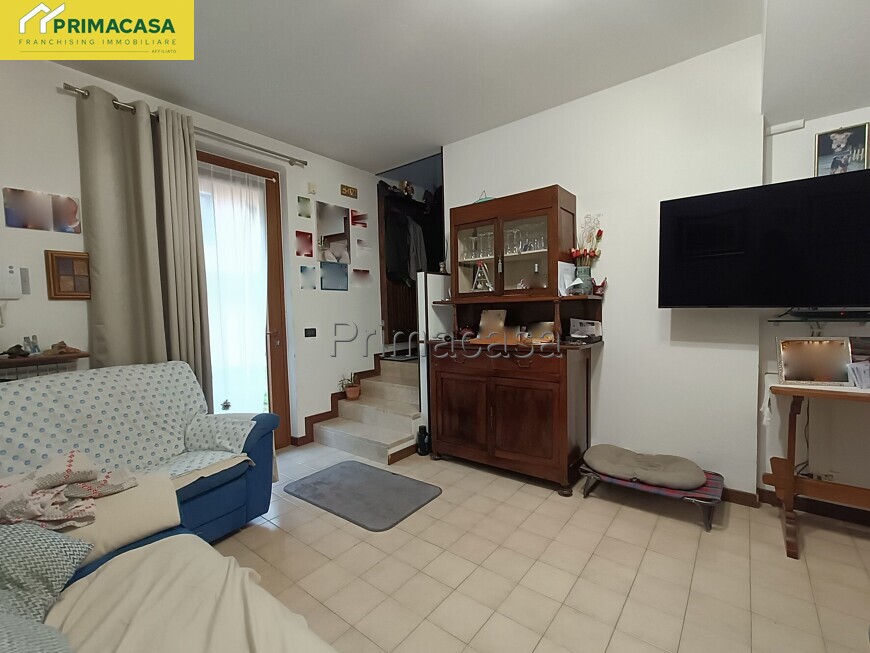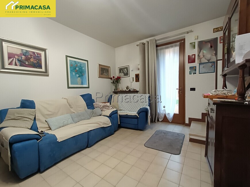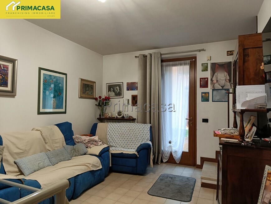 In zona centrale e comoda a tutti i servizi, casa a schiera disposta su due livelli con giardino privato, composta da un'ampia zona giorno con cucina abitabile e bagno di servizio al piano terra. Tre camere matrimoniali con due balconi e ampio bagno con doccia al primo piano. Garage singolo e piccola corte pavimentata.