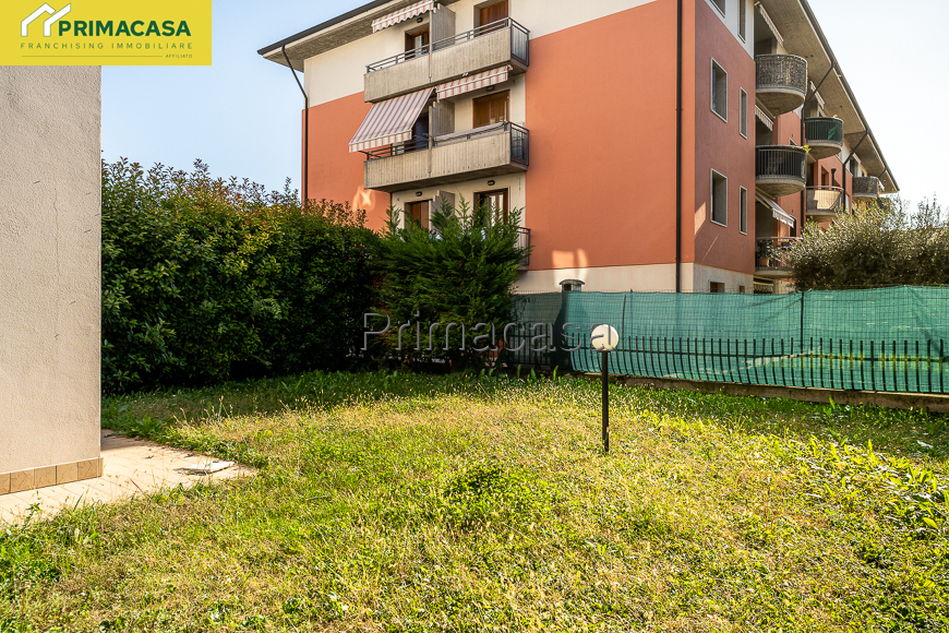 A pochi passi dal centro paese, bilocale al piano terra con ampio giardino privato (165 mq circa), composto di ampio soggiorno con angolo cottura, camera matrimoniale, bagno finestrato e ripostiglio. Garage e cantina al piano interrato. Rif. 2853