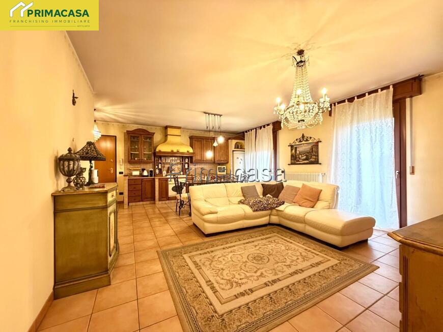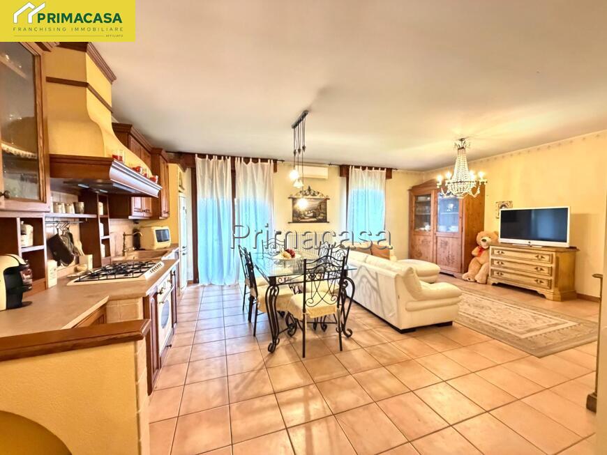 La soluzione si distingue per spazi ampi e ben distribuiti: l'ingresso conduce alla zona giorno open-space, molto luminosa e funzionale, con cucina su misura in marmo rosso di Verona. La zona notte è composta da due camere da letto matrimoniali, una camera singola e bagno finestrato caratterizzato da finiture eleganti. A completamento della proprietà troviamo due garages doppi che garantiscono ampio spazio per più veicoli o funzione di deposito.