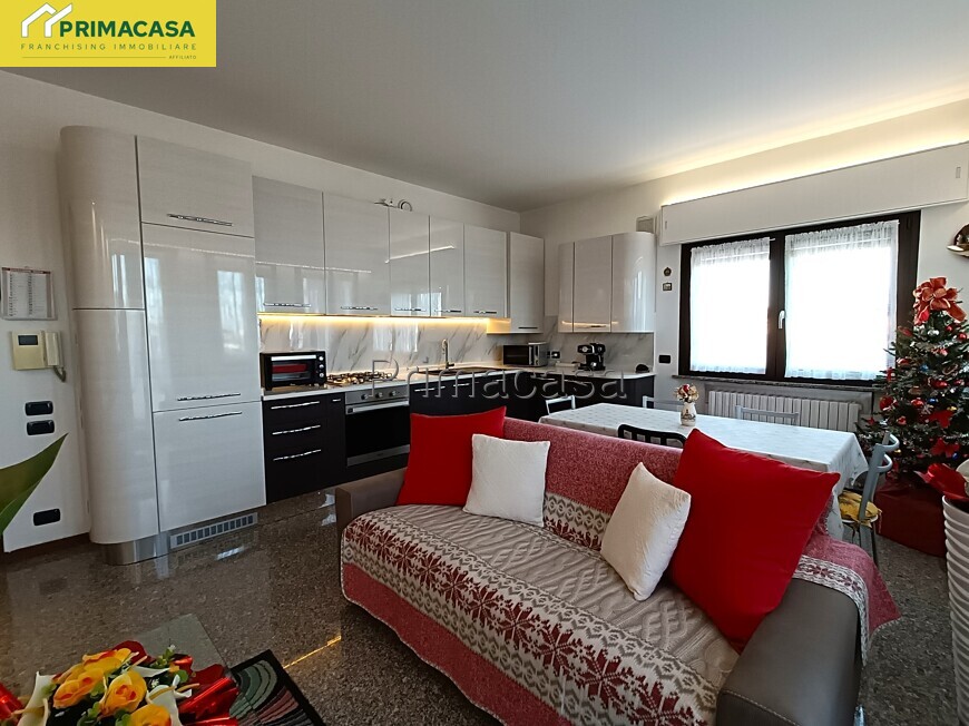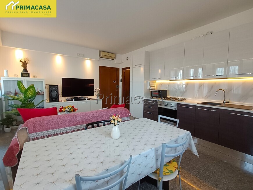 - Sala da pranzo con angolo cottura, elettrodomestici e accesso al balcone