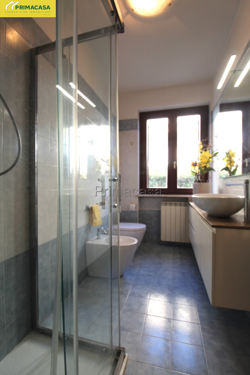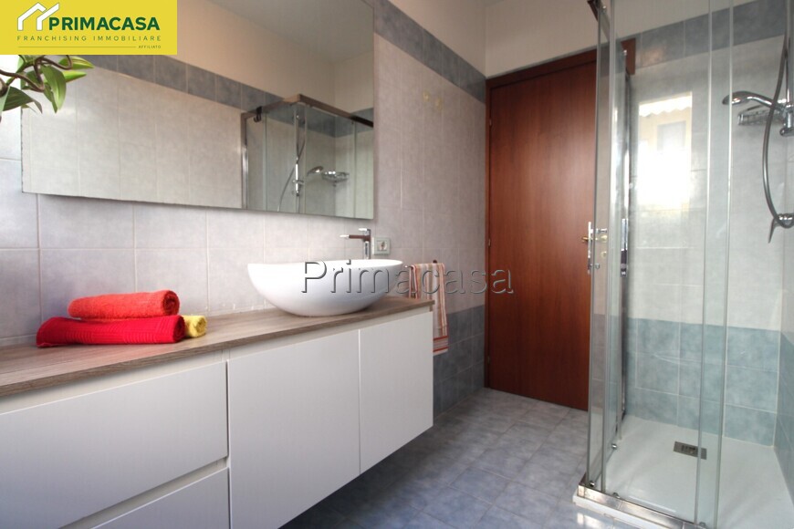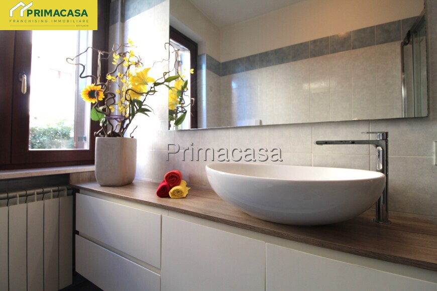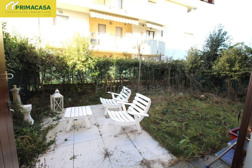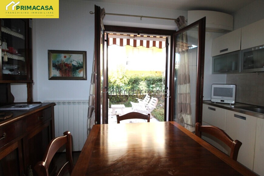 In zona residenziale proponiamo in vendita appartamento bilocale posto al piano terra con giardino esclusivo, composto di ingresso, soggiorno con cucina a vista, una camera con guardaroba e un bagno finestrato con antibagno. Completano l'unità la cantina e il garage al piano interrato. L'immobile in buono stato manutentivo presenta finiture in gress porcellanato in tutte le stanze, ceramica nel bagno con doccia, serramenti in legno con doppio vetro, impianto di riscaldamento autonomo con radiatori in ghisa. Impianto di climatizzazione. L'immobile viene venduto arredato di cucina, tenda da sole esterna e impianto di aria condizionata.