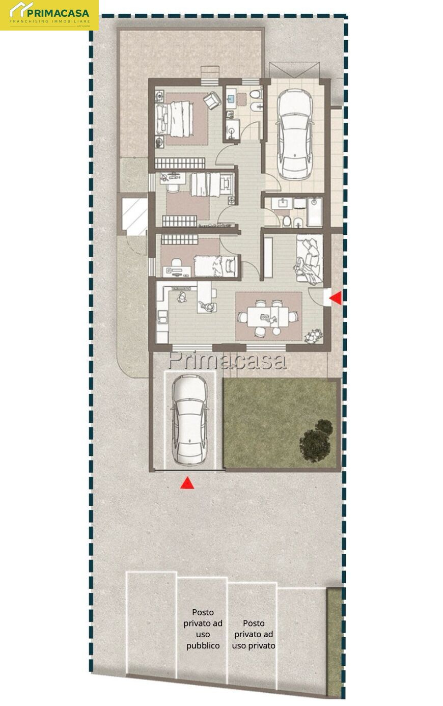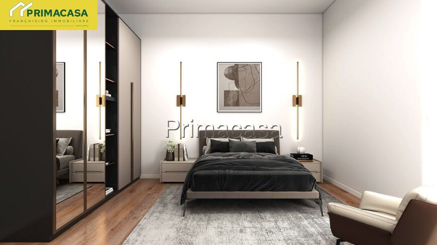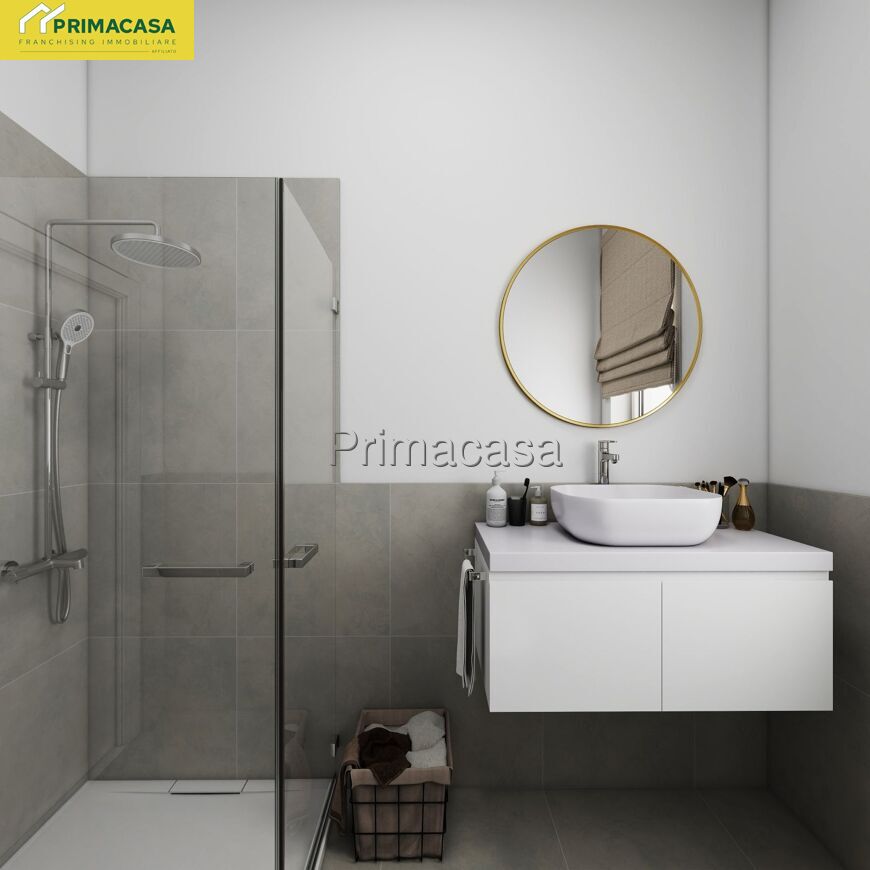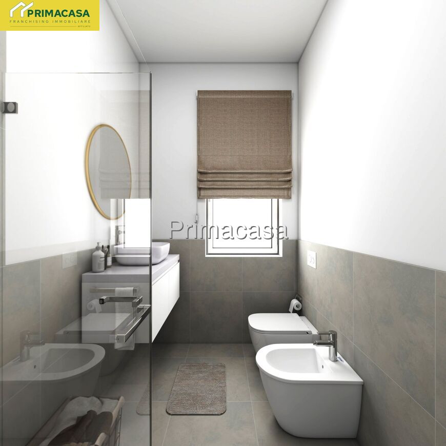 Le finiture includono pavimenti in gres porcellanato effetto legno naturale uniformi in tutta la casa, rivestimenti dei bagni in gres beige effetto pietra, infissi in PVC con doppio vetro, porta d’ingresso blindata.