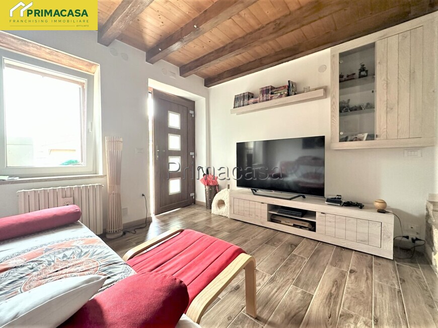 L’abitazione si sviluppa su più livelli ed è composta da un accogliente salottino d’ingresso, soggiorno con camino e angolo cottura, una camera matrimoniale, due bagni e una soffitta rifinita, ideale come seconda camera o studio.